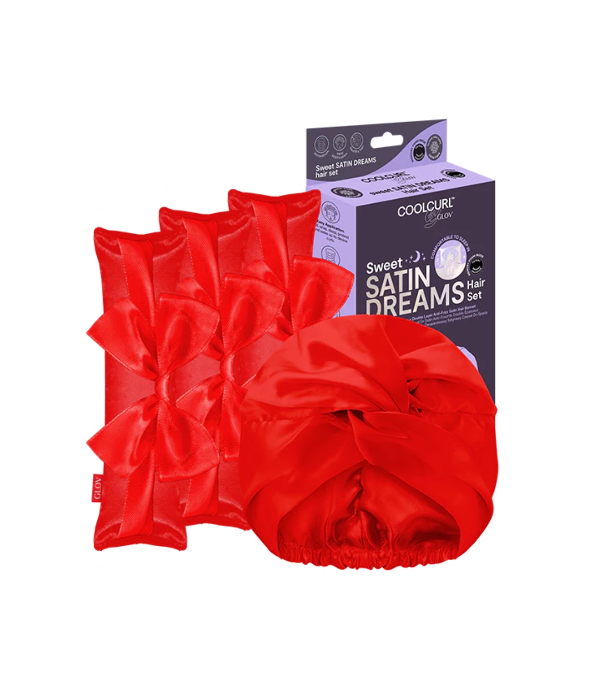 Entdecken Sie das Haarset Sweet Satin Dreams , eine luxuriöse Kombination aus Lockenwicklern und der doppelschichtigen Anti-Frizz-Satinkappe GLOV für herrliche, hitzefreie Locken und krausfreie Morgen.