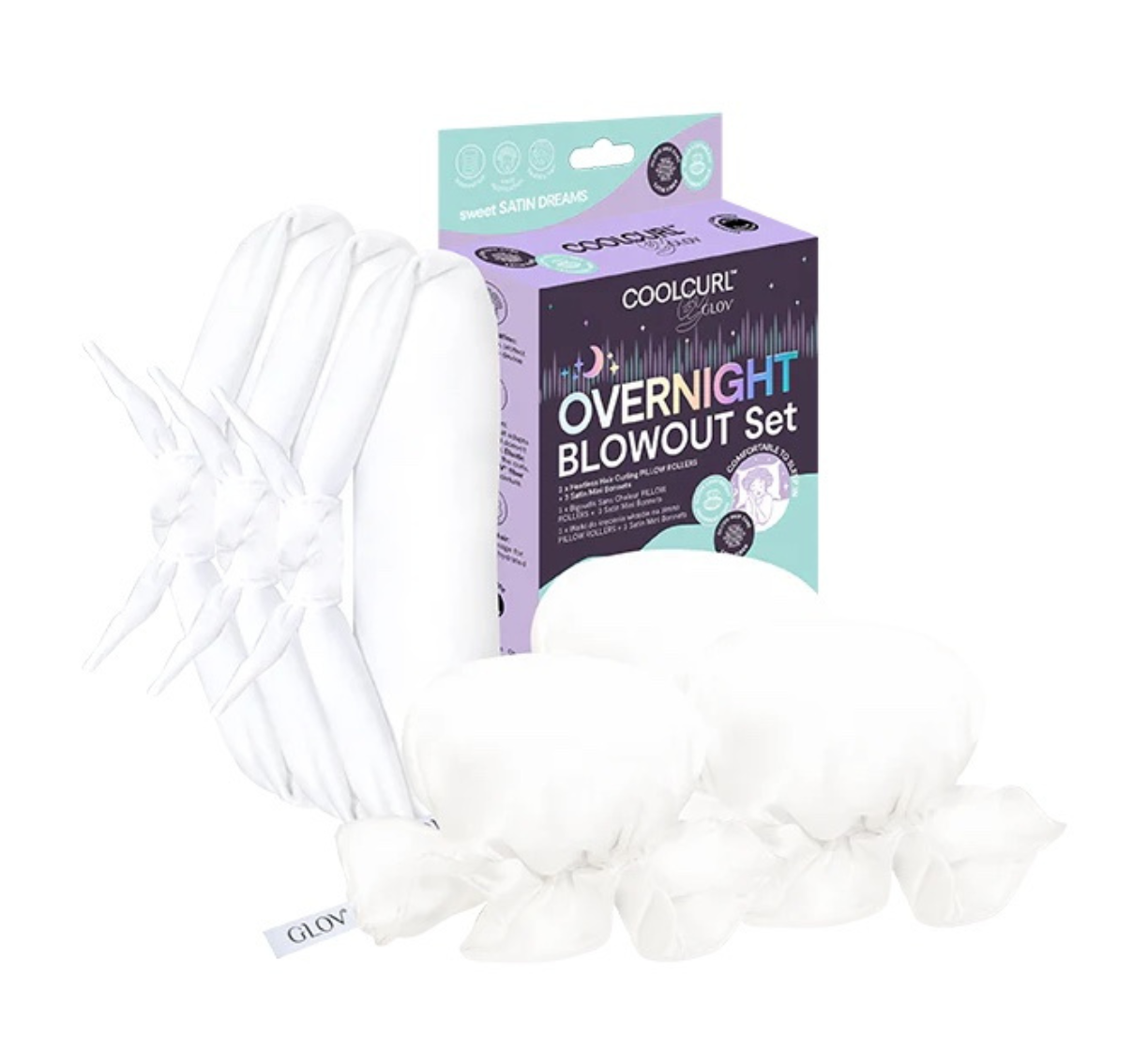GLOV – Hitzefreies Lockenwickler-Haarset + Satin-Schutzkappe Sweet Satin Dreams