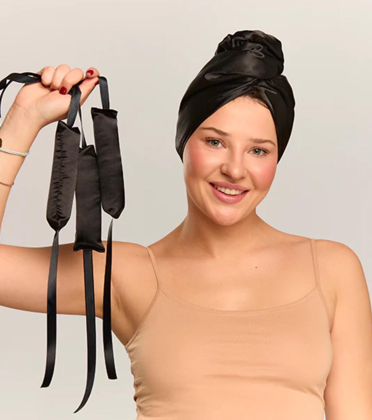 Diese innovativen Lockenwickler sind aus luxuriösem Satinstoff gefertigt und verfügen über zwei bezaubernde Bänder zum Binden und Halten Ihrer Haare.