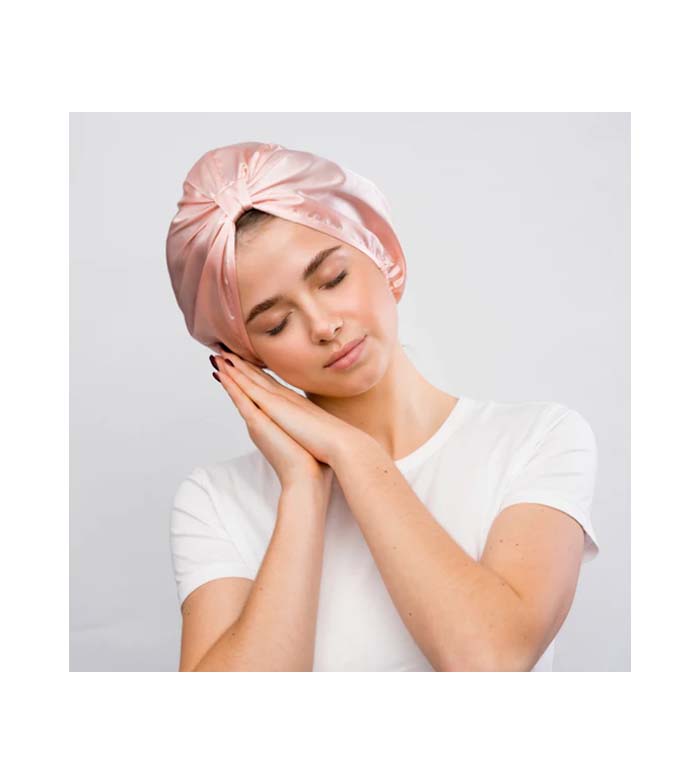 Dank der Eigenschaften von Satin, einem weichen und atmungsaktiven Material, trocknet die Mütze das Haar nicht aus und schützt es vor schädlicher Reibung, die ungewollt entsteht, wenn wir uns im Schlaf bewegen.