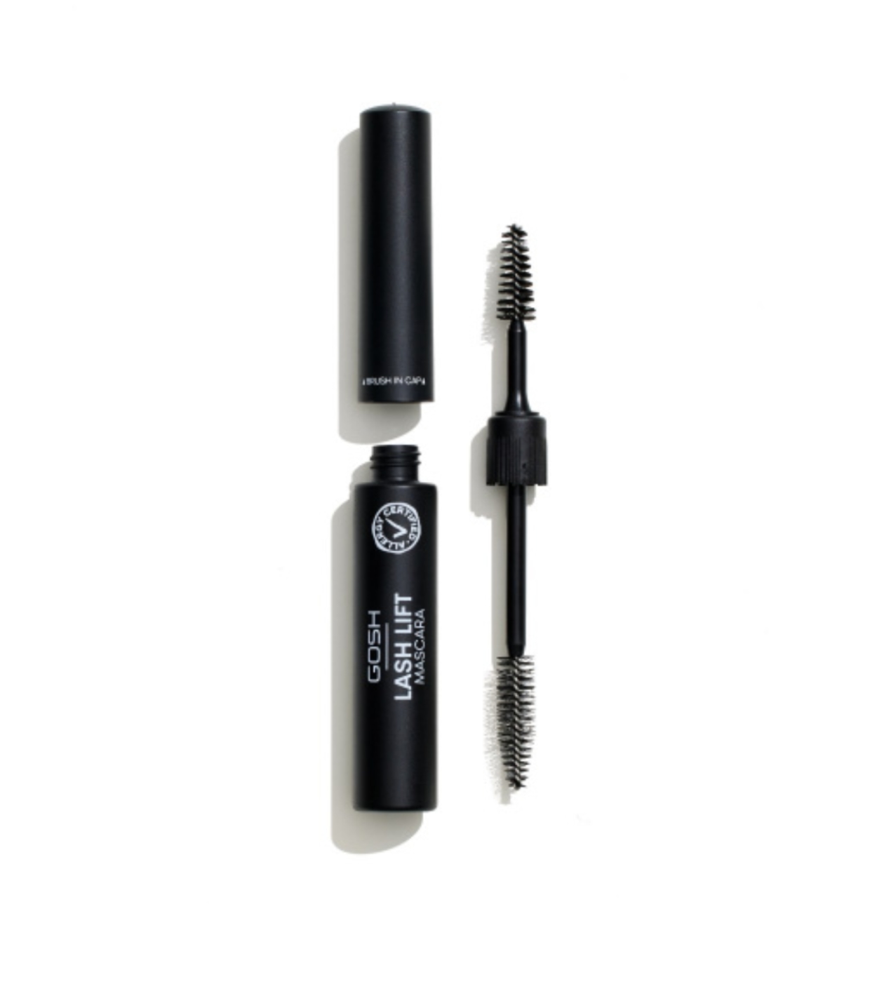 Gosh Gosh Mascara ist eine 2-in-1-Innovation, die eine langanhaltende Formel mit einer in die Kappe integrierten Trockenbürste kombiniert, ideal, um einen professionellen Lifting-Effekt zu erzielen, ohne dass eine Salonbehandlung erforderlich ist.