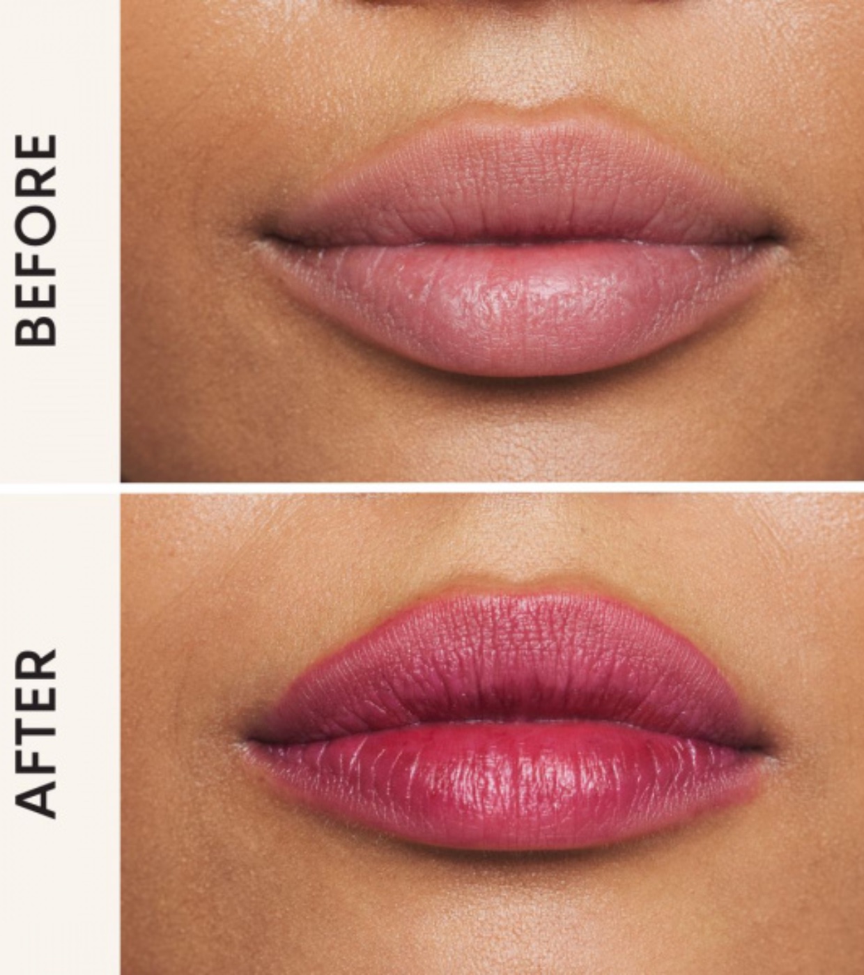 Weil? Denn die Farbe zieht in die Haut ein, anstatt wie Lippenstift darauf zu bleiben.