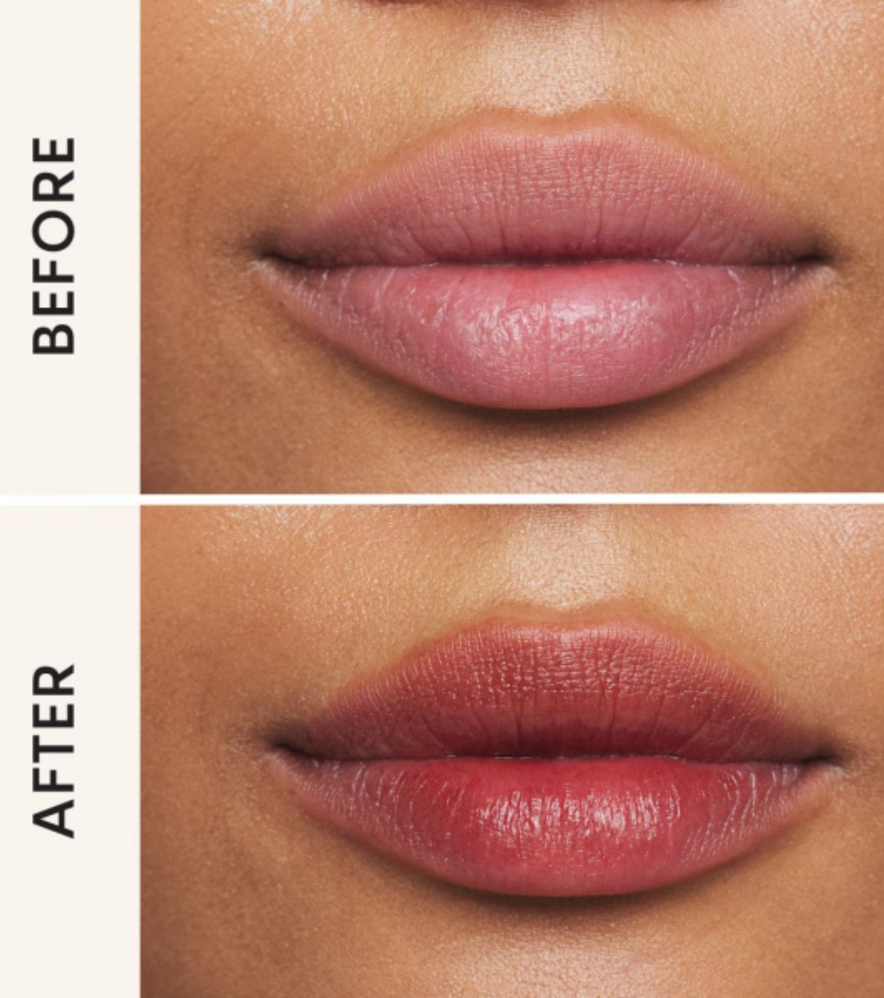 Weil? Denn die Farbe zieht in die Haut ein, anstatt wie Lippenstift darauf zu bleiben.