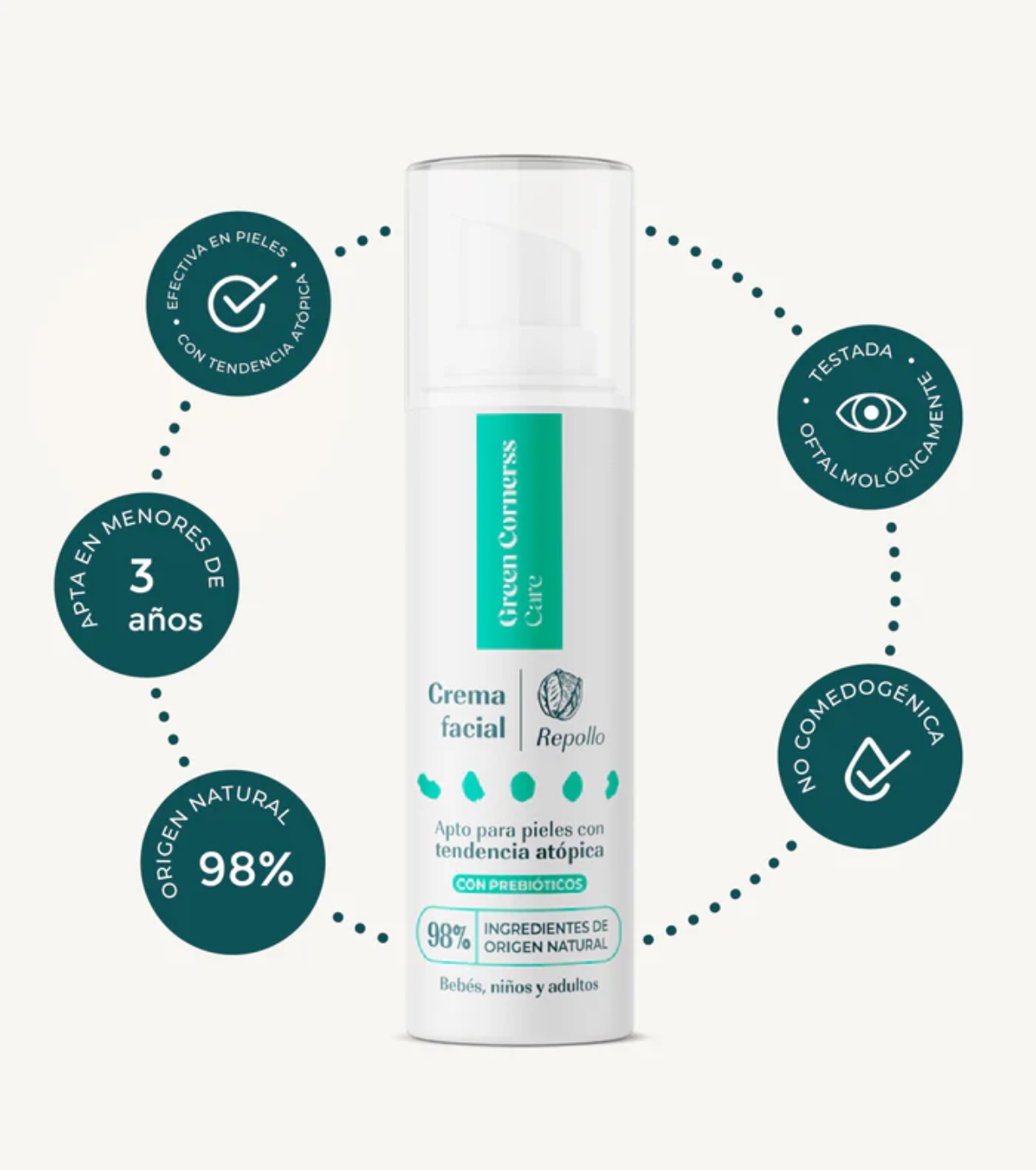 Die feuchtigkeitsspendende Gesichtscreme von Green Cornerss wurde für empfindliche und zu Neurodermitis neigende Haut entwickelt. Sie spendet tiefe Feuchtigkeit, beruhigt und repariert die zarte Haut von Babys, Kindern und Erwachsenen.