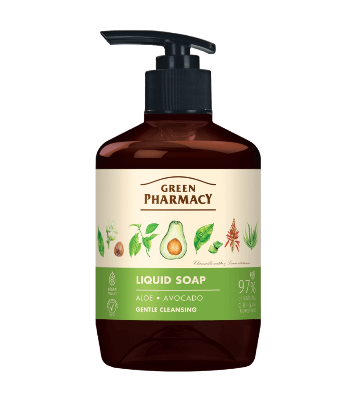 Green Pharmacy Flüssige Handseife mit Aloe Vera und Avocado reinigt sanft und effektiv und respektiert dabei das natürliche Gleichgewicht der Haut.