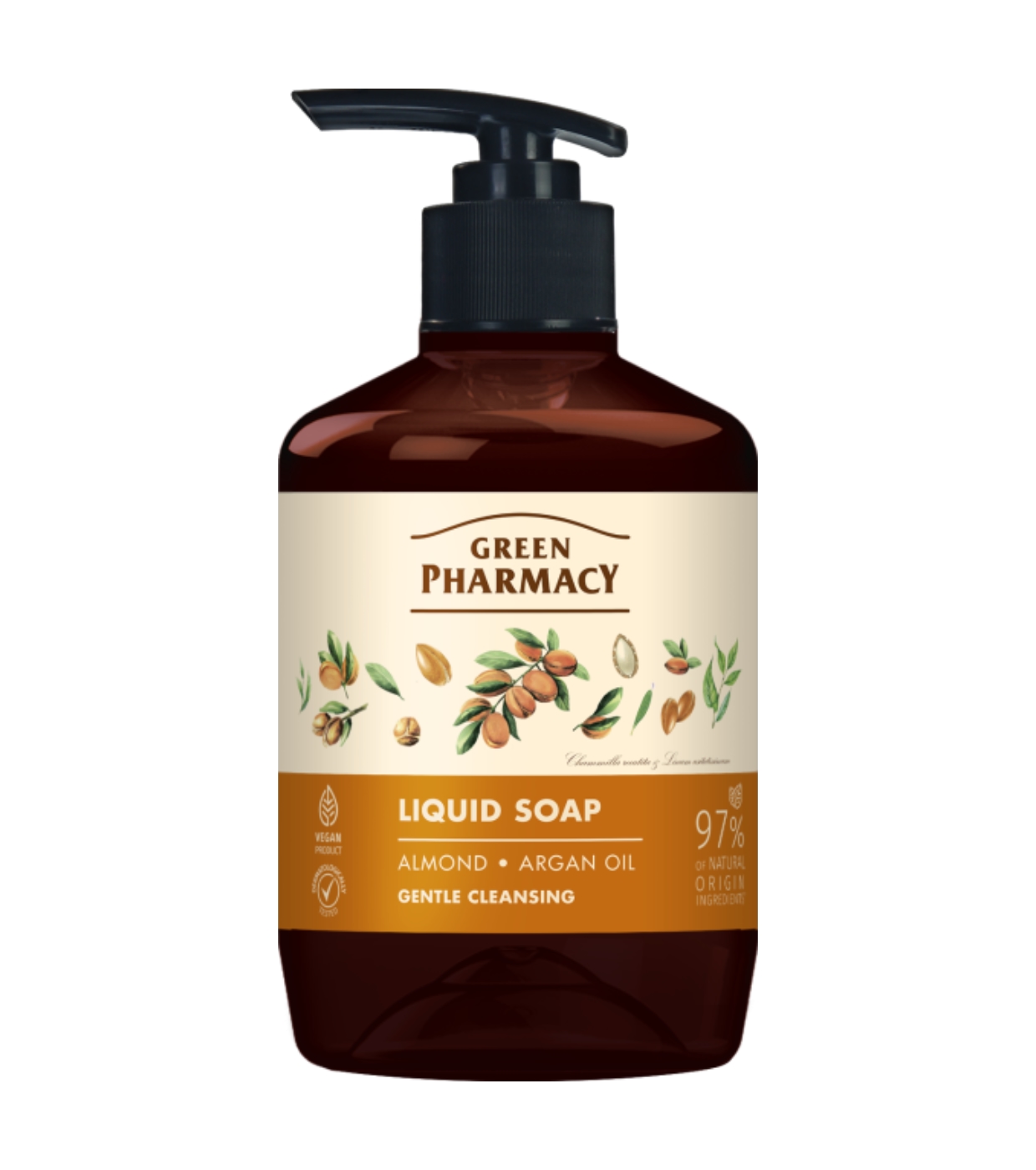 Genießen Sie eine sanfte und pflegende Reinigung mit der flüssigen Handseife mit Mandeln und Arganöl von Green Pharmacy , ideal für die tägliche Hautpflege.