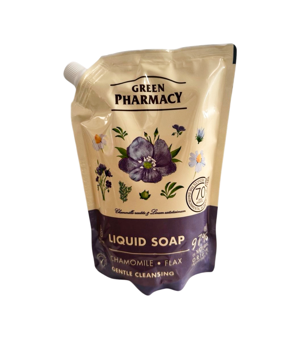 Grüne Apotheken-Kamillen-Flüssigseife ist der erste Schritt, um Ihre Hände Tag für Tag mit Feuchtigkeit zu versorgen, weich zu machen und zu parfümieren.