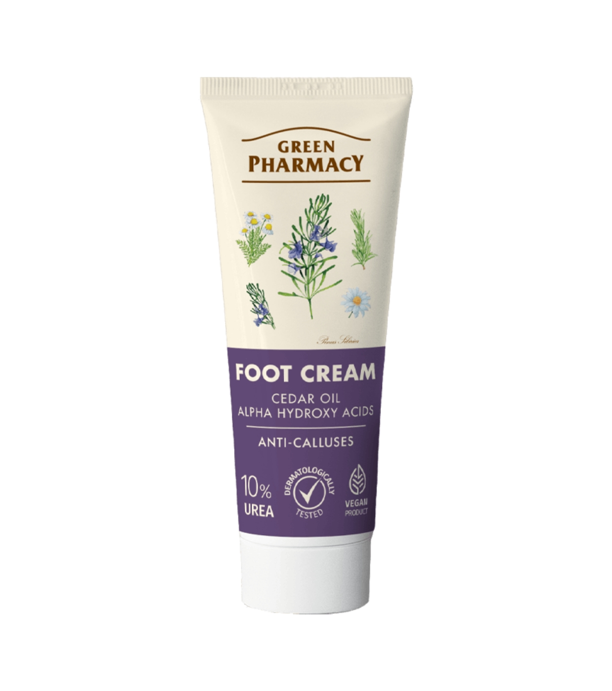 Fußcreme gegen Schwielen und Hornhaut mit Alpha-Hydroxysäure und Zedernöl von Green Pharmacy ,   eine Creme, die der Bildung von Schwielen und Beulen vorbeugt.
