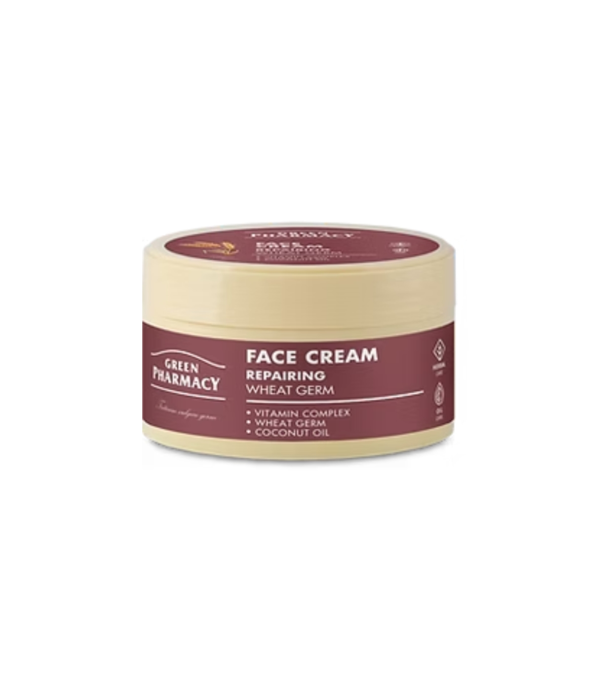 Verwöhnen Sie Ihre Haut mit der Weizenkeim-Gesichtscreme von Green Pharmacy, die speziell zur Bekämpfung von Mimikfalten und Zeichen der Hautalterung ab 30 Jahren entwickelt wurde.