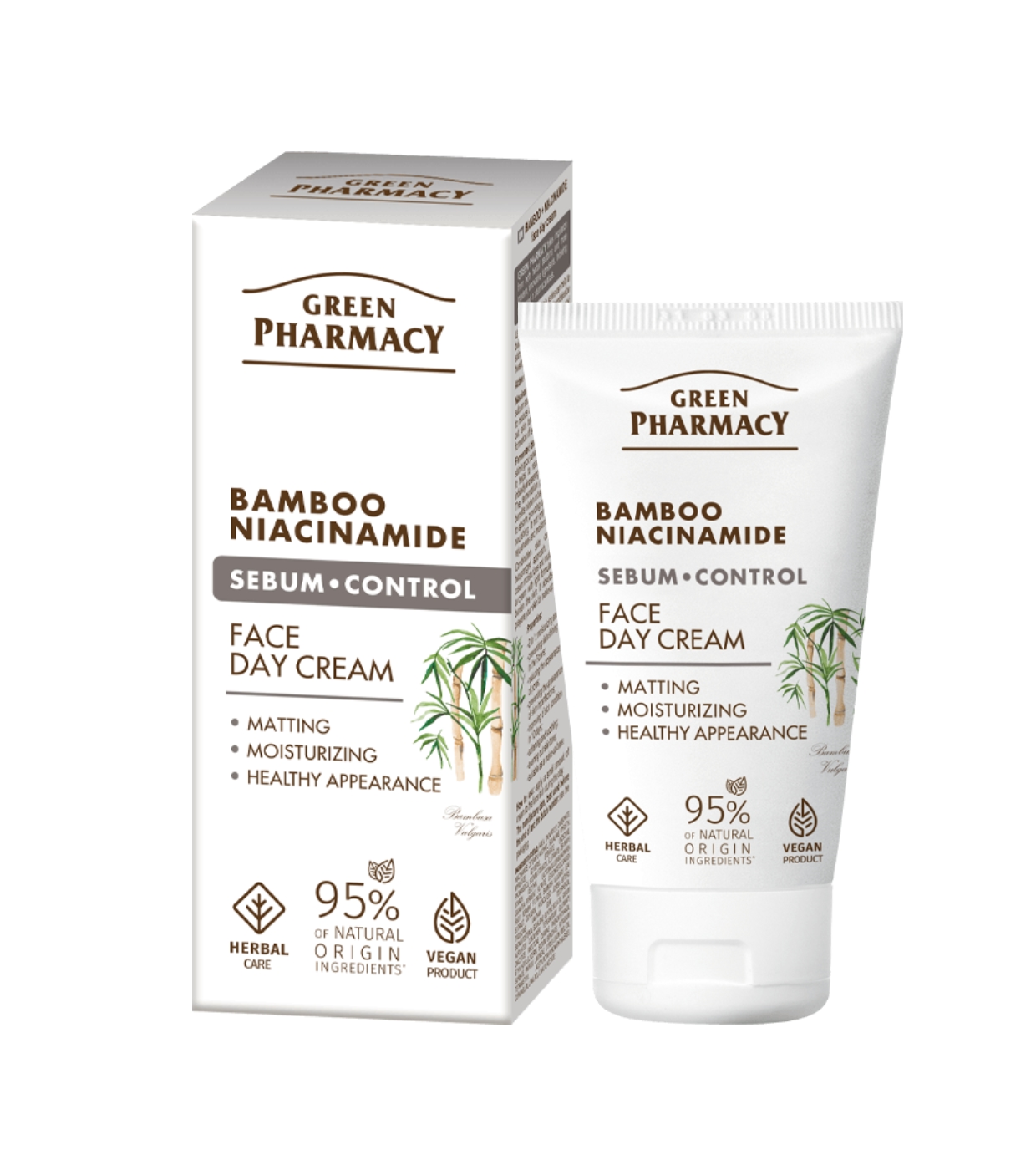 Die Pflege von Mischhaut erfordert ein Gleichgewicht zwischen Feuchtigkeitsversorgung und Glanzkontrolle. Deshalb spendet die Green Pharmacy Sebum Control Day Face Cream mit Bambus + Niacinamid Feuchtigkeit ohne ein schweres Gefühl, während sie die Haut mattiert und vorbereitet.