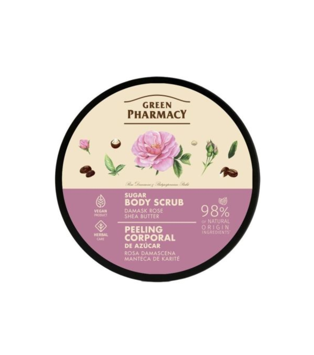 Entdecken Sie das Körperpeeling mit Damaszener-Rosenzucker und Sheabutter, einen multifunktionalen Helfer in Ihrer Schönheitsroutine, der abgestorbene Zellen, überschüssigen Talg und Unreinheiten entfernt und die Haut weich, erneuert und strahlend macht.
