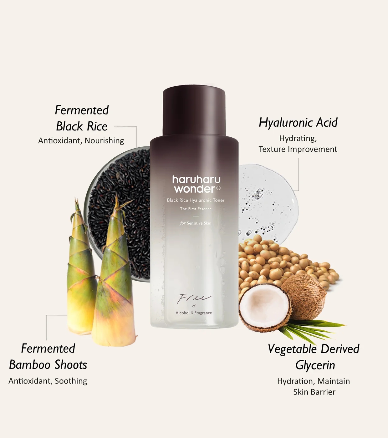 Eine neue Version des meistverkauften Gesichtswassers von Haruharu Wonder , das Gesichtswasser Black Rice Hyaluronic Free Fragance , ideal für die empfindlichste Haut.