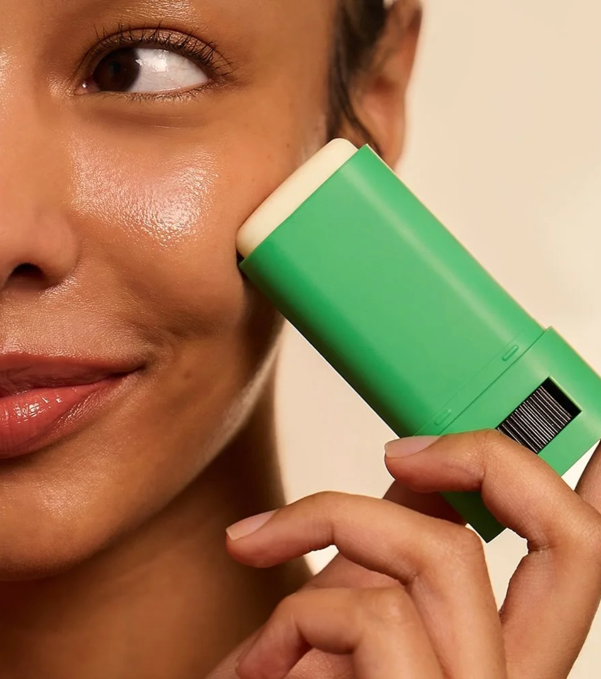 Im letzten Schritt Ihrer Hautpflegeroutine drehen Sie die Grundierung, um etwa 0,5 cm des Stifts freizulegen, und streichen Sie damit sanft über die gesamte freiliegende Haut wie Gesicht, Hals und Schultern.