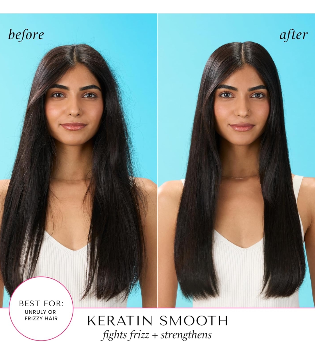 Weichmachender Conditioner mit Keratin-Protein, das das Haar stärkt und weich, glänzend und ohne Kräuselungen macht.