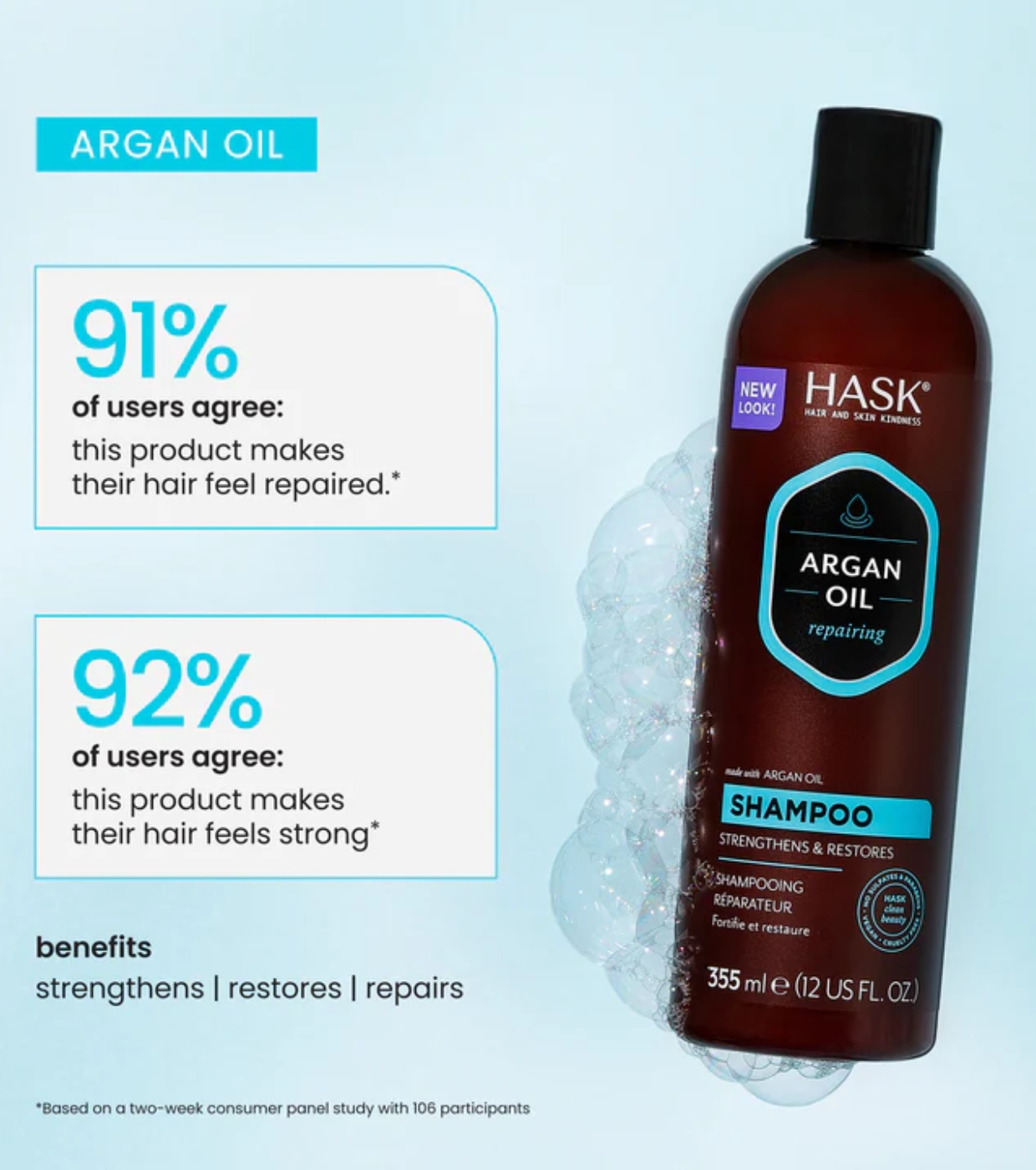 Mit einem Aufguss von feuchtigkeitsspendendem Arganöl durchdringt dieses Shampoo den Haarschaft und reinigt es sanft, während der Schaden und der Bruch repariert werden. Das Haar wird seidig und super glänzend.
