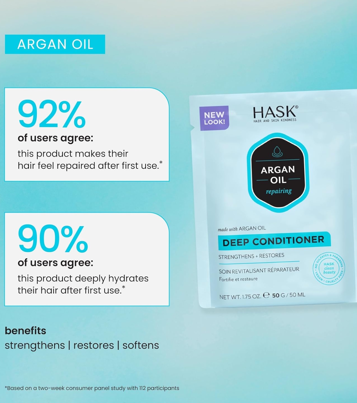 Belebt das Haar mit dem Arganöl-Conditioner und gibt ihm das Aussehen zurück.