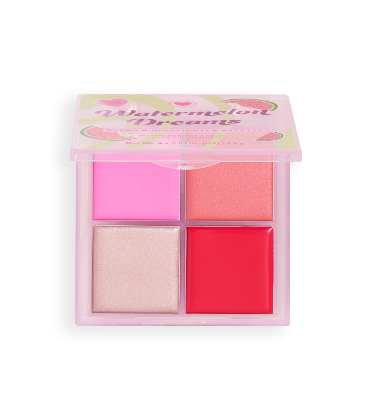 Holen Sie sich all die saftigen, fruchtigen Vibes mit der I Heart Revolution I Heart Revolution Face Palette, dem ultimativen Farb- und Glanzerlebnis, mit zwei Rougefarben und einem Creme-Highlighter.