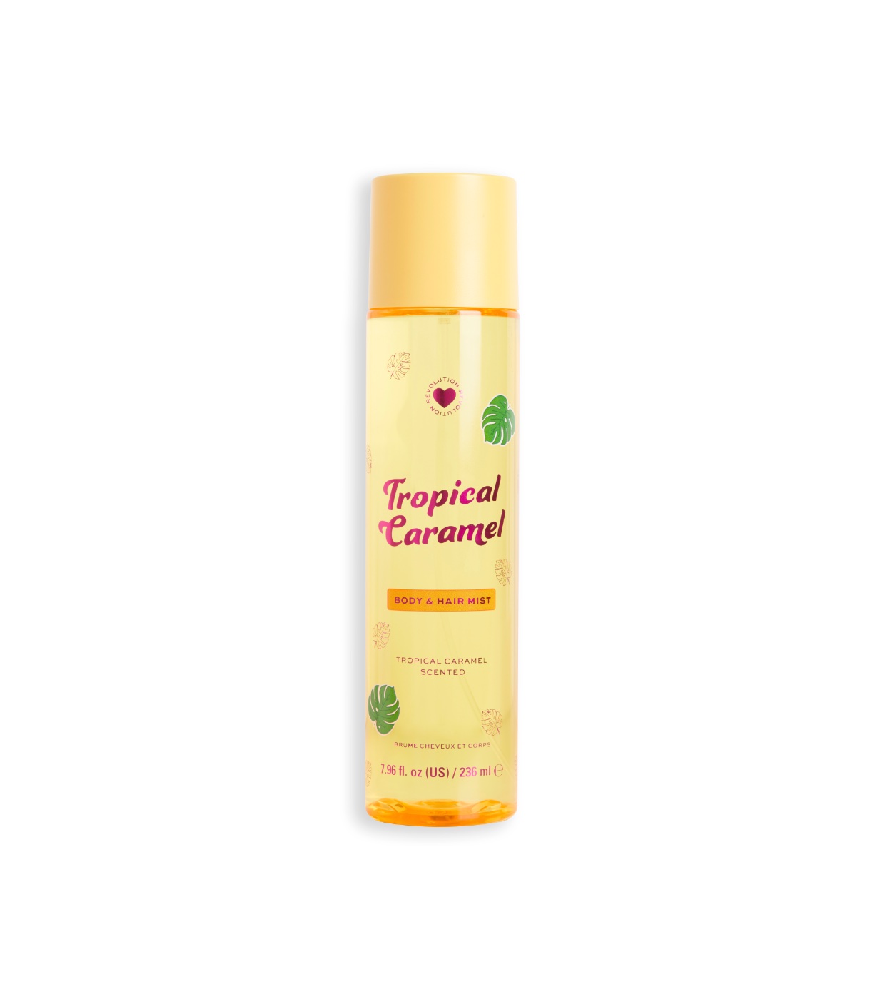 I Heart Revolution Tropical Caramel Hair and Body Mist eignet sich perfekt zum Aufsprühen auf Körper und Haare.