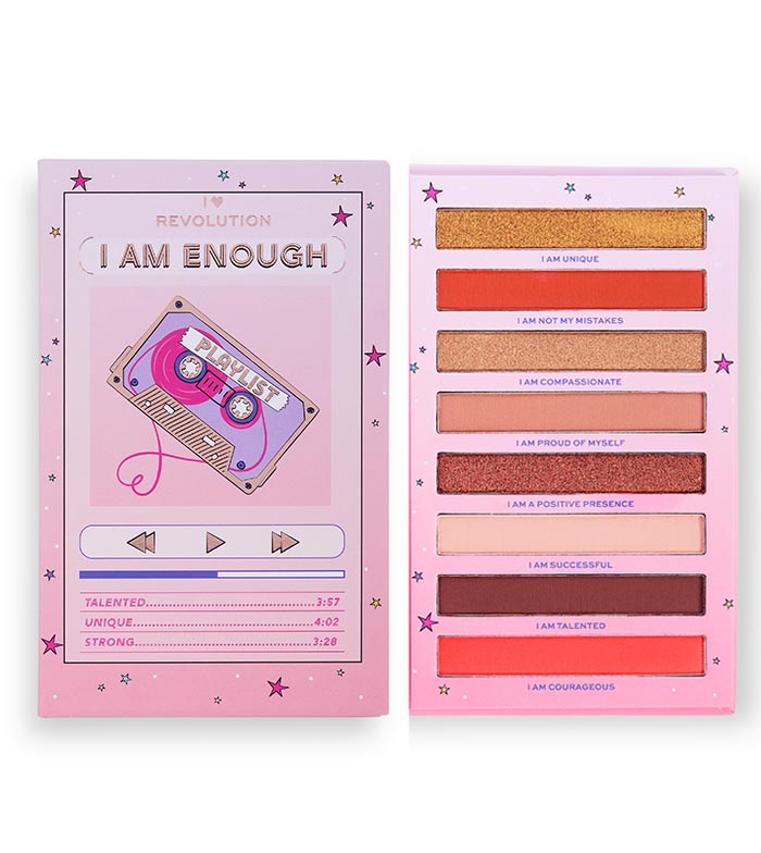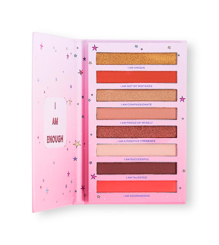 Eine I Heart Revolution Lidschatten-Palette, die zur Affirmation Book-Reihe gehört, einer Palette von Paletten mit positiven Affirmationen, die alle guten Schwingungen des Lebens anziehen.