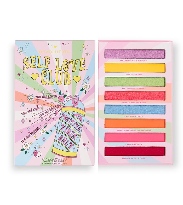 Self Love Club enthält Rosa-, Blau-, Violett-, Gelb- und Grüntöne, um Ihnen einen farbenfrohen Look zu verleihen.