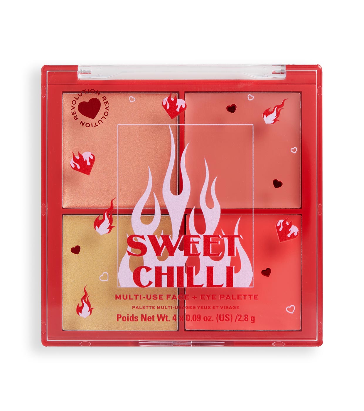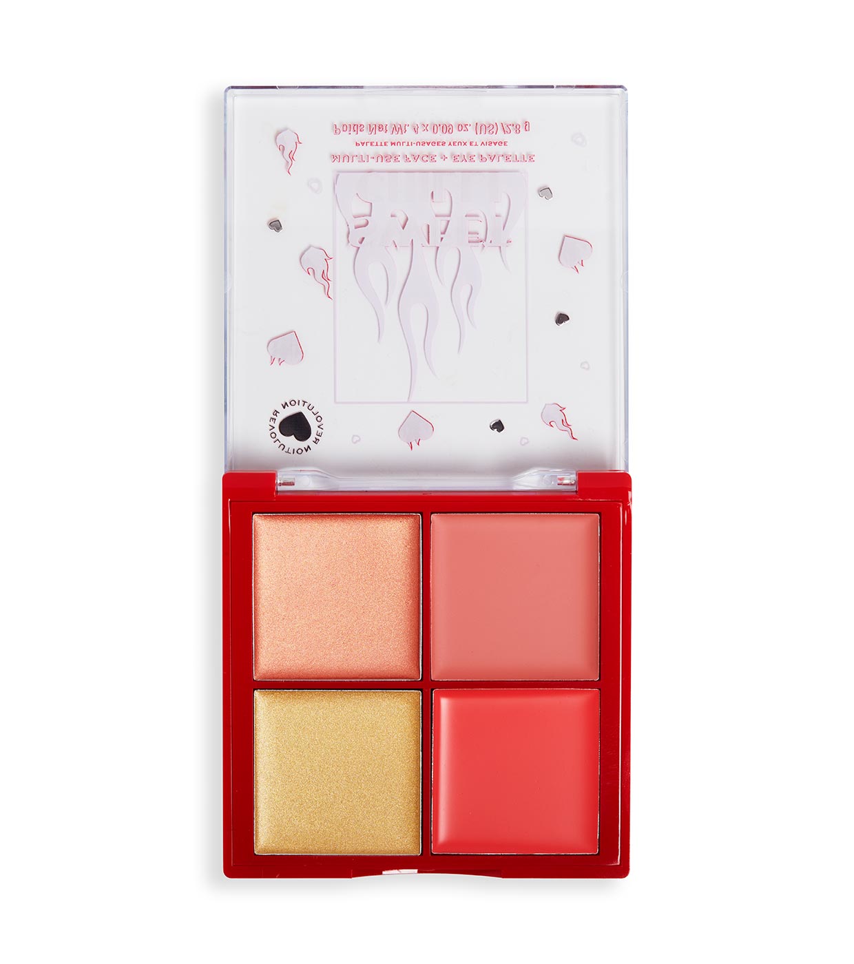 Begrüßen Sie unsere schärfste Markteinführung ... Bringen Sie Ihre glamouröseste Seite mit den feurigen Farben der I Heart Revolution Multi-Use Face and Eye Palette zum Vorschein.