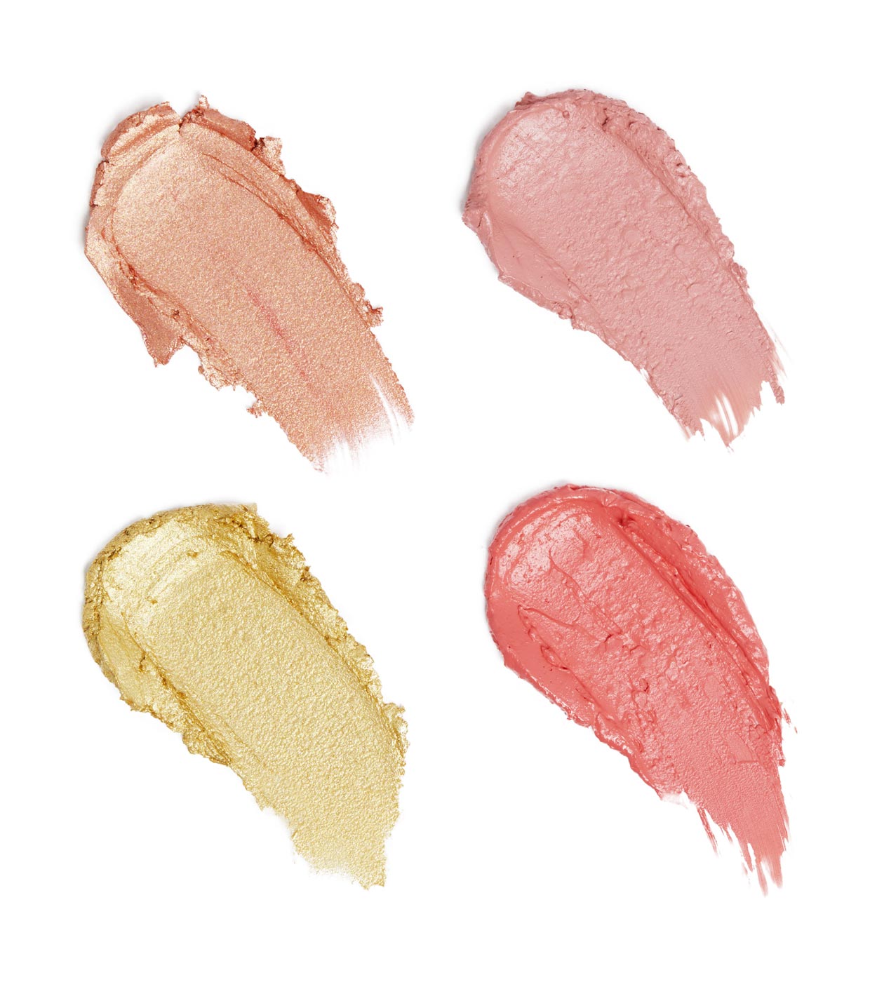 Mit zwei Highlighter-Nuancen und zwei Rouge-Nuancen in einem cremigen Finish lässt sich dieses leichte Quad perfekt auftragen und erhellt Ihre Wangen mit der ultimativen Farbe oder dem ultimativen Glanz, der garantiert Hitzewellen verursacht!