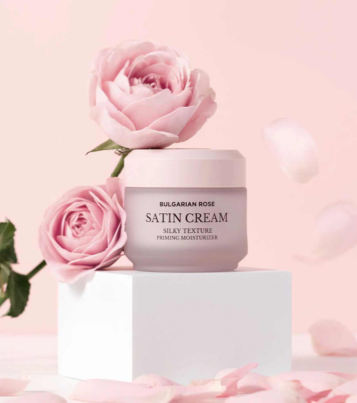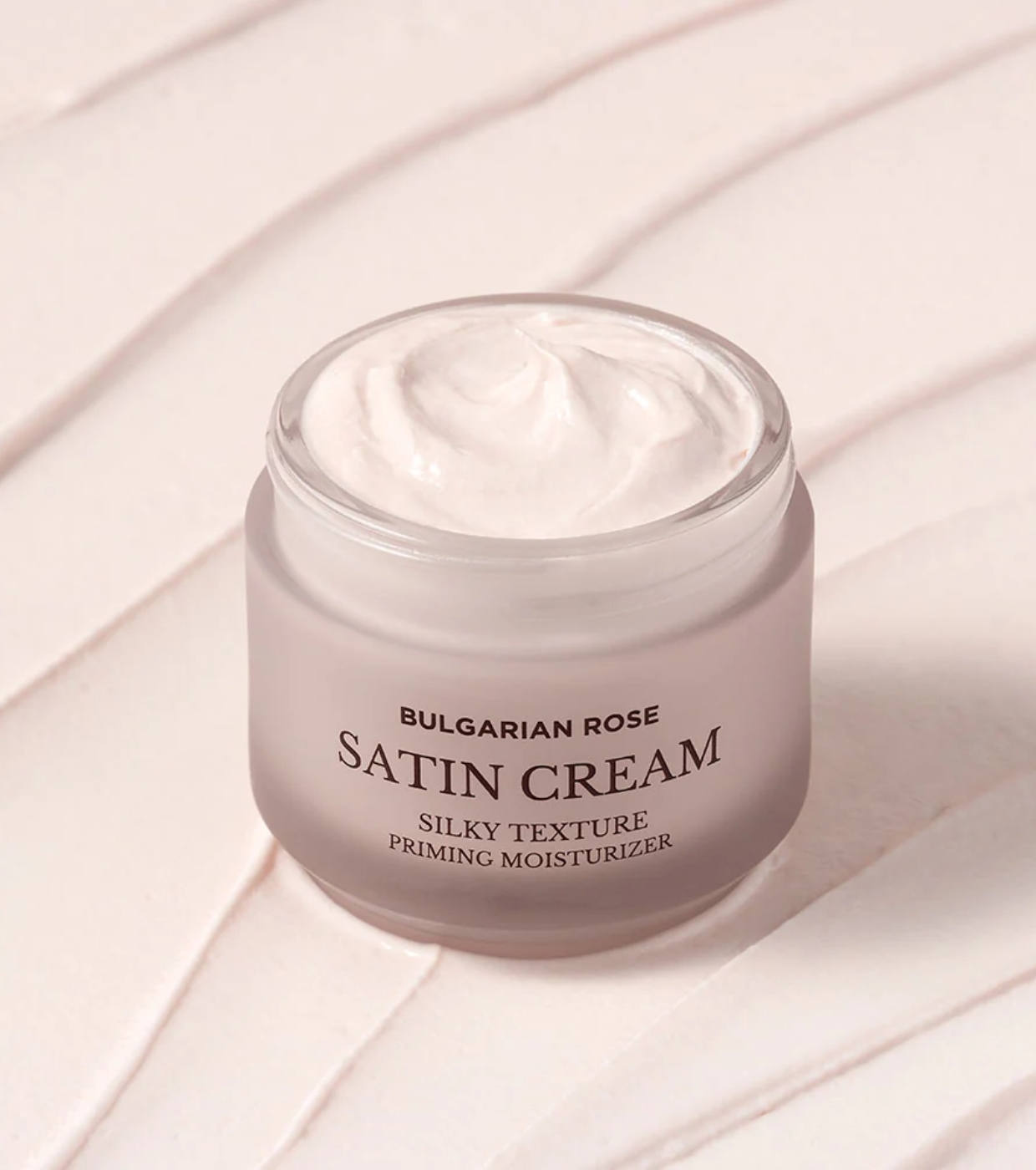 Satin Cream Satin Cream Moisturizing and Repairing Cream mit Damascus Rose Water ist eine sanfte Peeling- und Pflegebehandlung, die als Grundierung und Feuchtigkeitsbooster für trockene, stumpfe oder schuppige Haut dient.