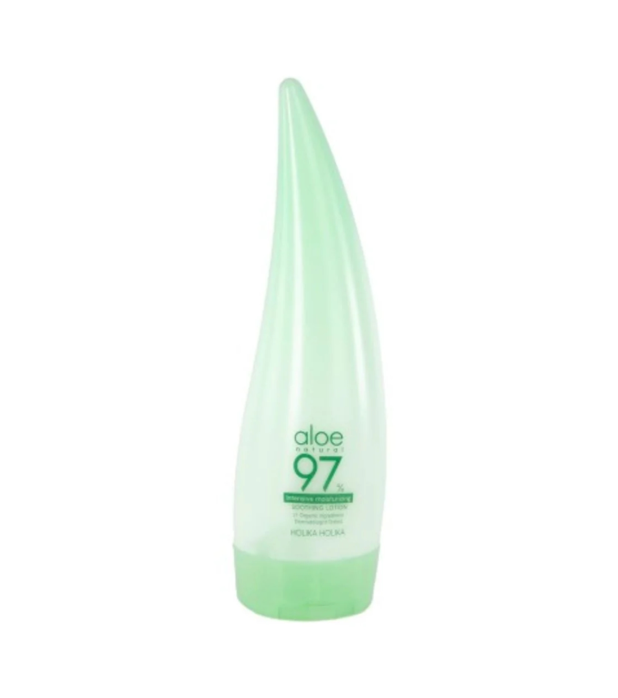 Holika Holika Aloe Natural Formula 97% Soothing Lotion ist eine leichte, schnell einziehende Lotion mit 97 % natürlicher Aloe Vera, ideal zum Hydratisieren, Beruhigen und Regeneration der Haut.