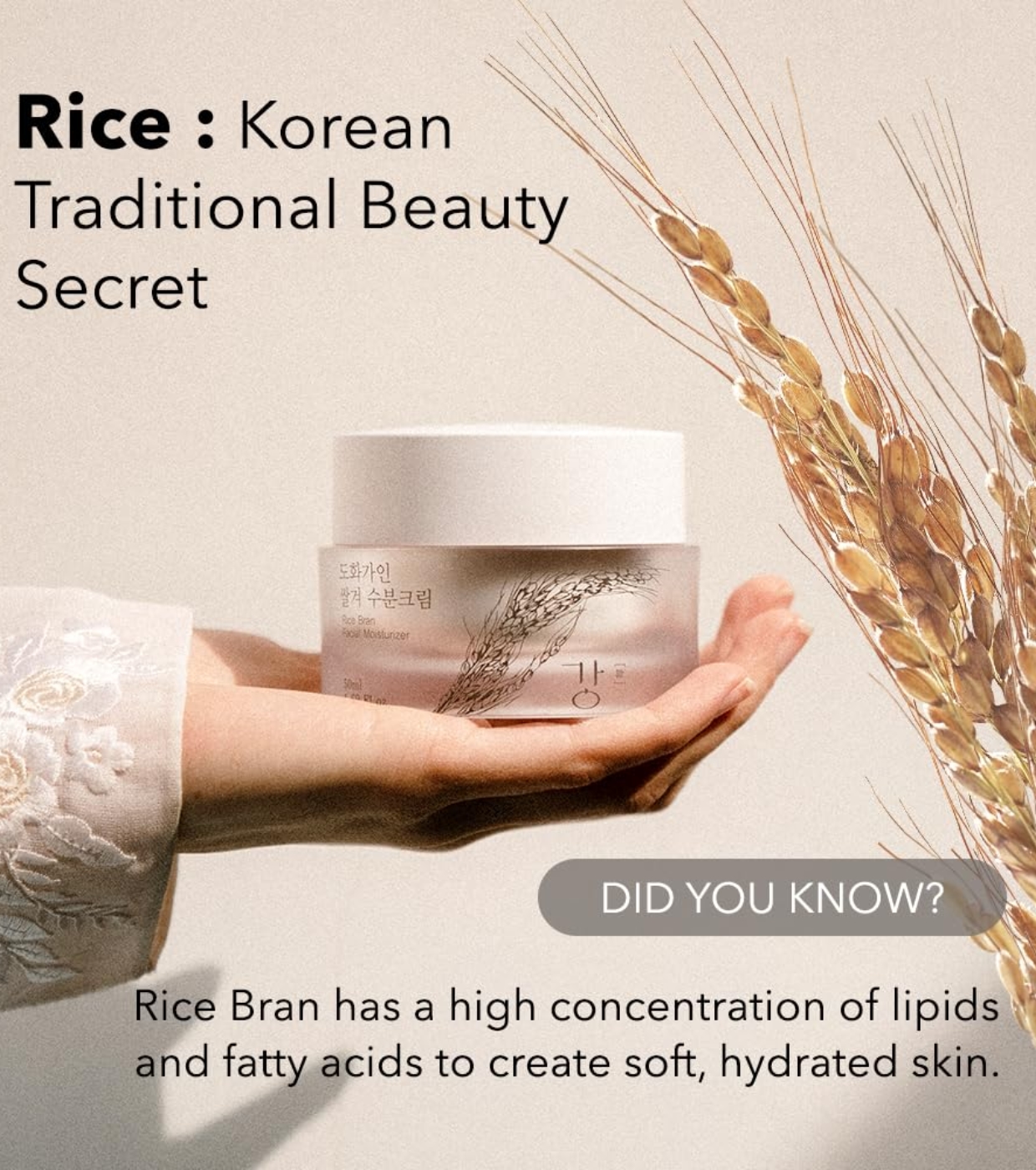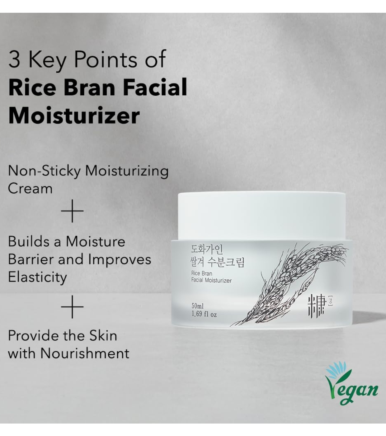 Rice Bran Facial Moisturizer Rice Bran Facial Moisturizer ist eine koreanische Gesichtscreme mit Reiskleie, einer traditionellen Zutat in der koreanischen Kosmetik, die seit Jahrhunderten wegen ihrer feuchtigkeitsspendenden, beruhigenden und aufhellenden Eigenschaften verwendet wird.