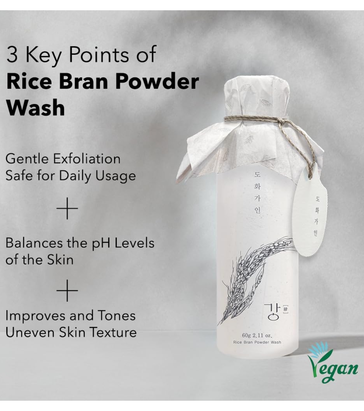 Rice Bran Powder Wash Rice Bran Powder Wash ist ein enzymatisches Gesichtsreinigungspulver, das Sanftheit und Wirksamkeit vereint und die Haut strahlender, ebenmäßiger und frischer macht.