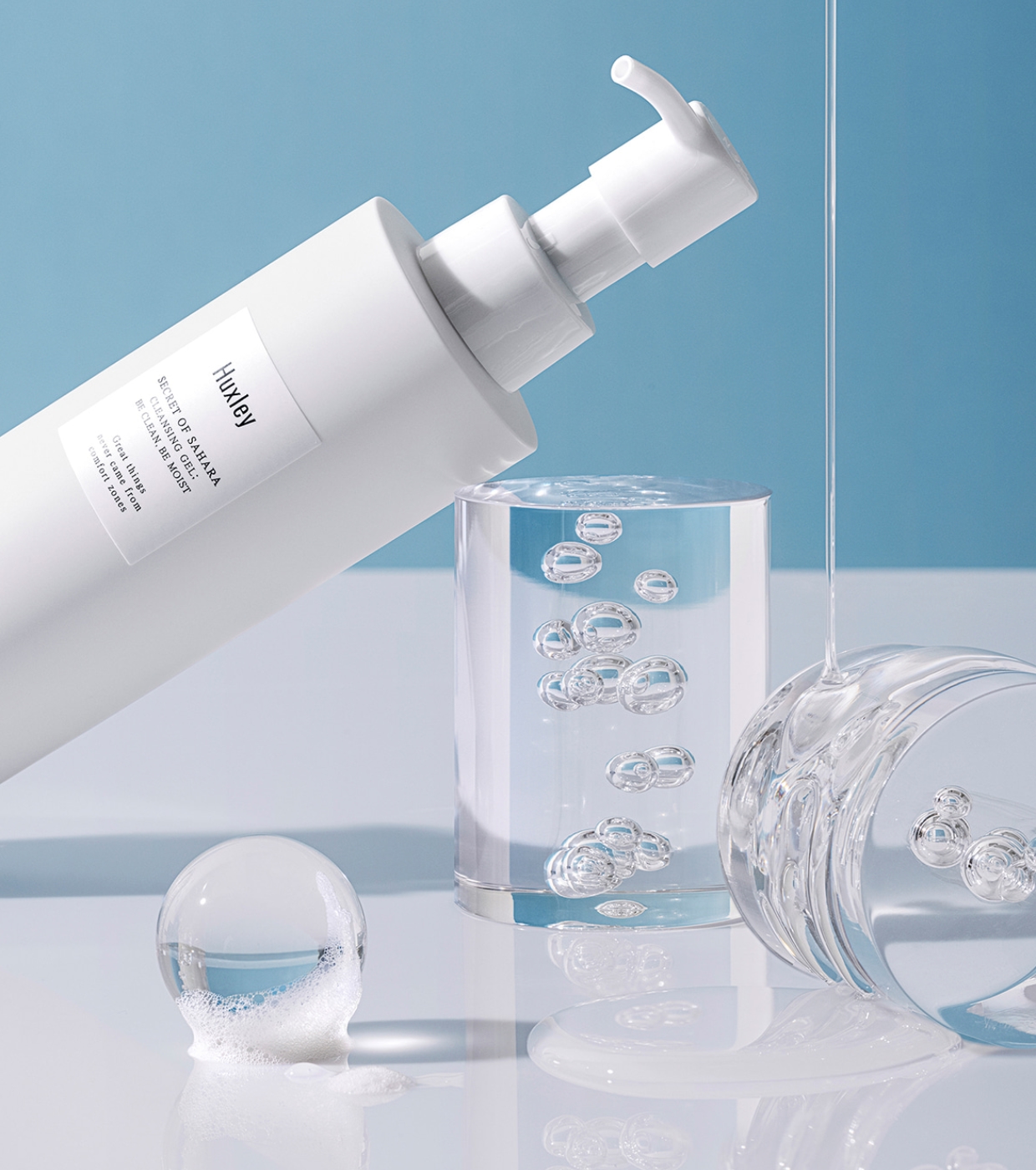 Entdecken Sie die perfekte Balance zwischen Tiefenreinigung und sanfter Pflege mit Cleansing Gel Be Clean Be Moists Huxley , einem wasserbasierten Reinigungsmittel mit Geltextur, das ideal für alle Hauttypen ist, selbst für die empfindlichste oder feuchtigkeitsarme Haut.