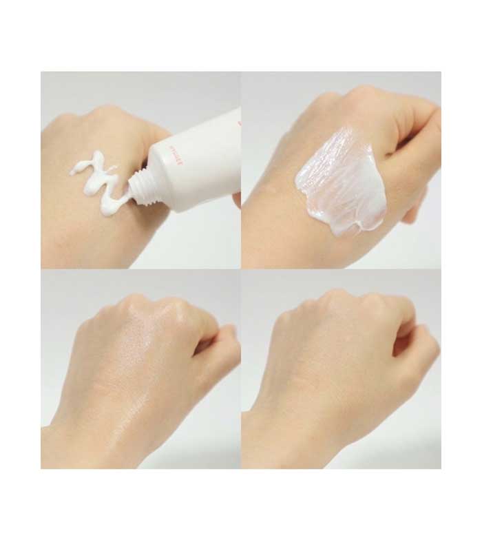 Dieser Sonnenschutz ist weich und leicht, Sie werden nur bemerken, dass Sie ihn wegen seines hydratisierten und schönen Hautfinishs tragen.