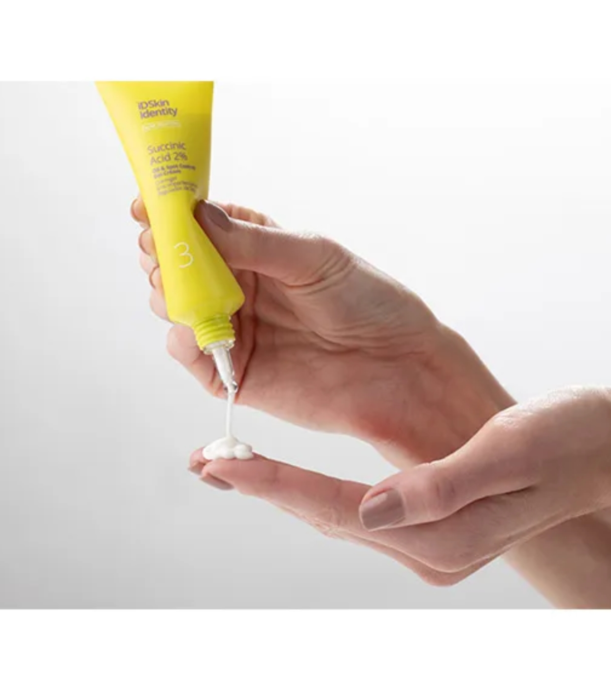 ID Skin Identity Die Anti-Blemish Face Cream mit 1 % Bernsteinsäure wurde mit einer leichten, schnell einziehenden Textur formuliert, die ein mattes Finish und eine ausgewogene Feuchtigkeitsversorgung ohne ein fettiges Gefühl bietet.