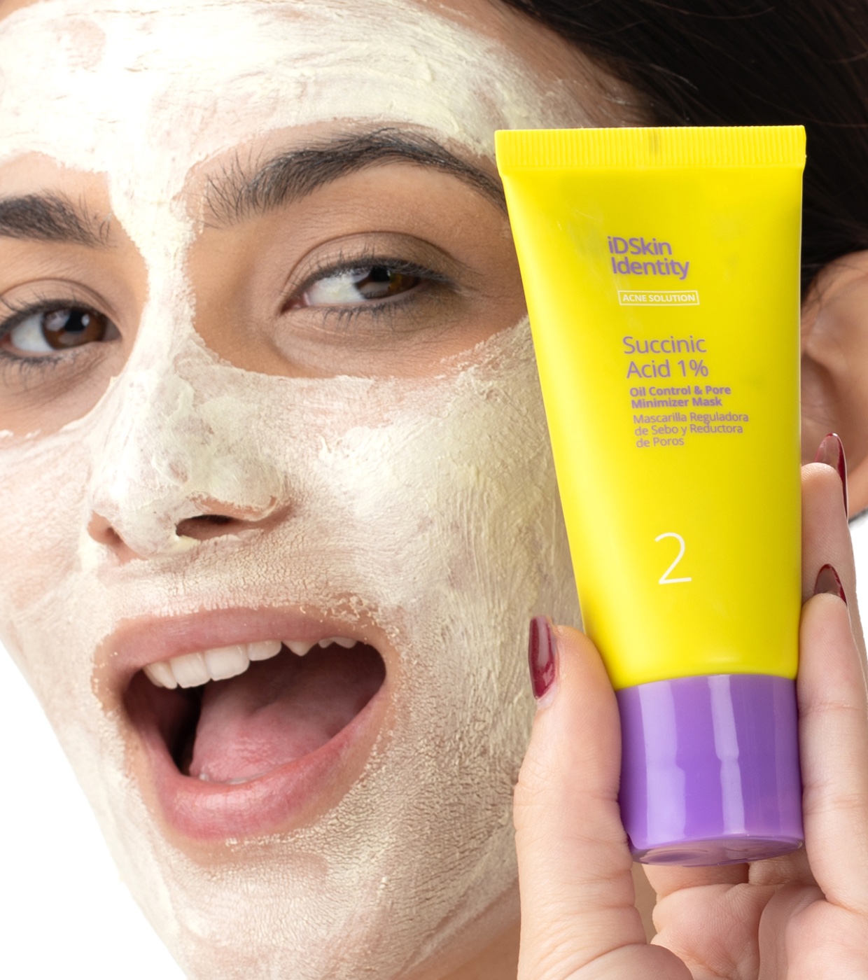 ID Skin Identity Die Gesichtsmaske mit Bernsteinsäure ist für fettige und zu Unreinheiten neigende Haut konzipiert und sorgt für eine Tiefenreinigung und einen mattierenden Effekt, ohne die Haut auszutrocknen.