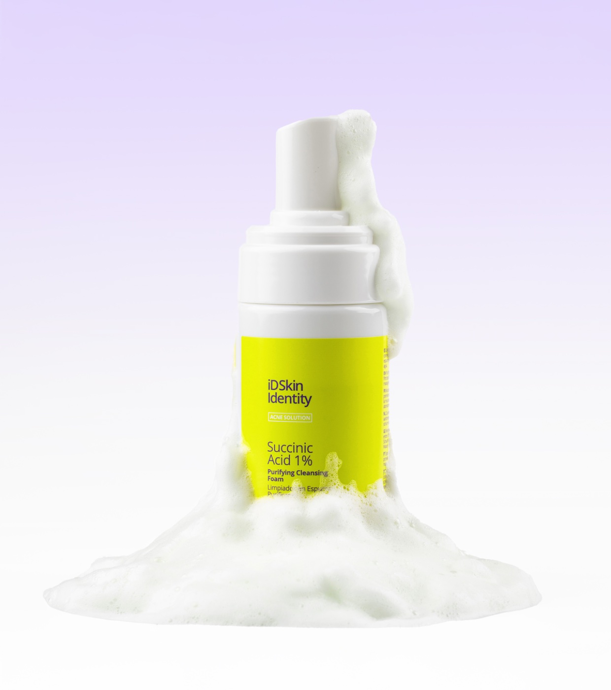 ID Skin Identity 1 % Bernsteinsäure-Reinigungsschaum ist ein innovatives Gesichtsreinigungsmittel, das die leichte, sanfte Textur von Schaum mit der reinigenden und ausgleichenden Wirkung von Bernsteinsäure kombiniert.