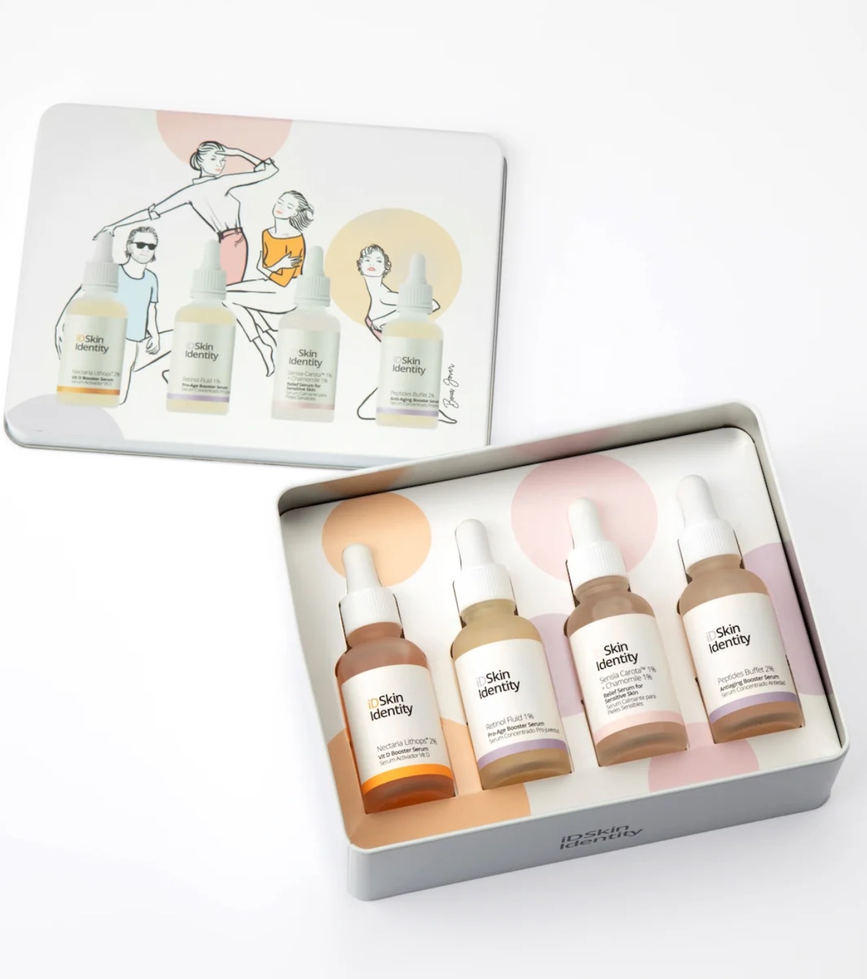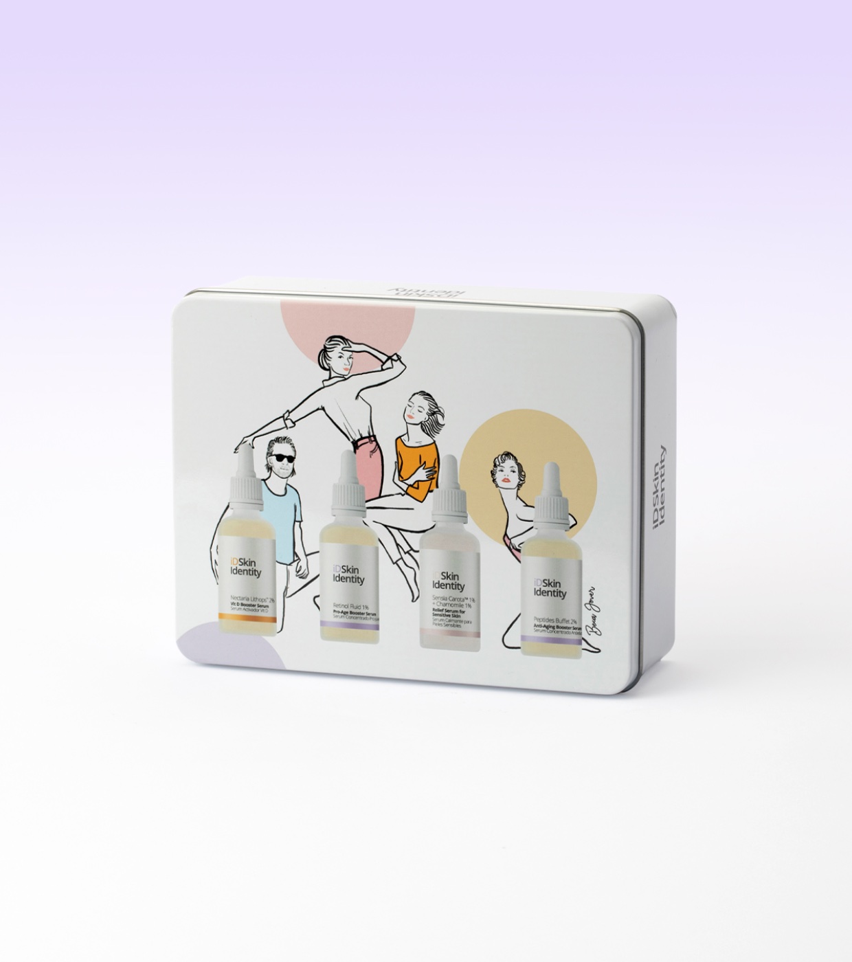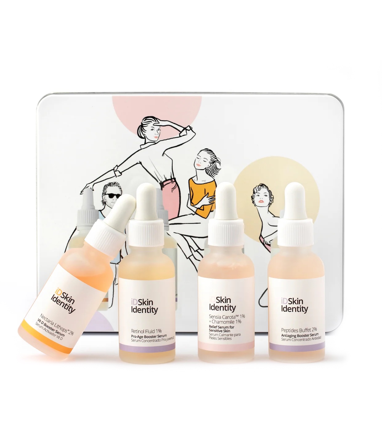 Neue Routine zur Pflege reifer Haut von ID Skin Identity mit vier Bestsellern der Marke, präsentiert in einem einzigartigen und originellen Design der Künstlerin Beca Jover.
