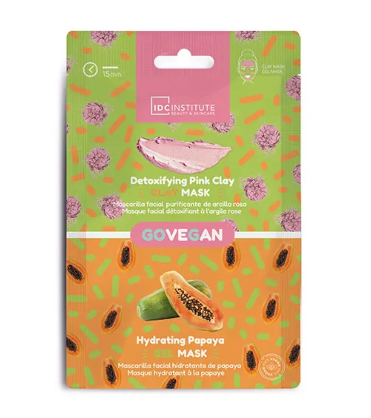 Diese 2-in-1-Gesichtsmaske aus rosa Tonerde und Papaya von IDC Institute ist eine reinigende und feuchtigkeitsspendende Maske , ein dynamisches Hautpflege-Duo für strahlende Ergebnisse.