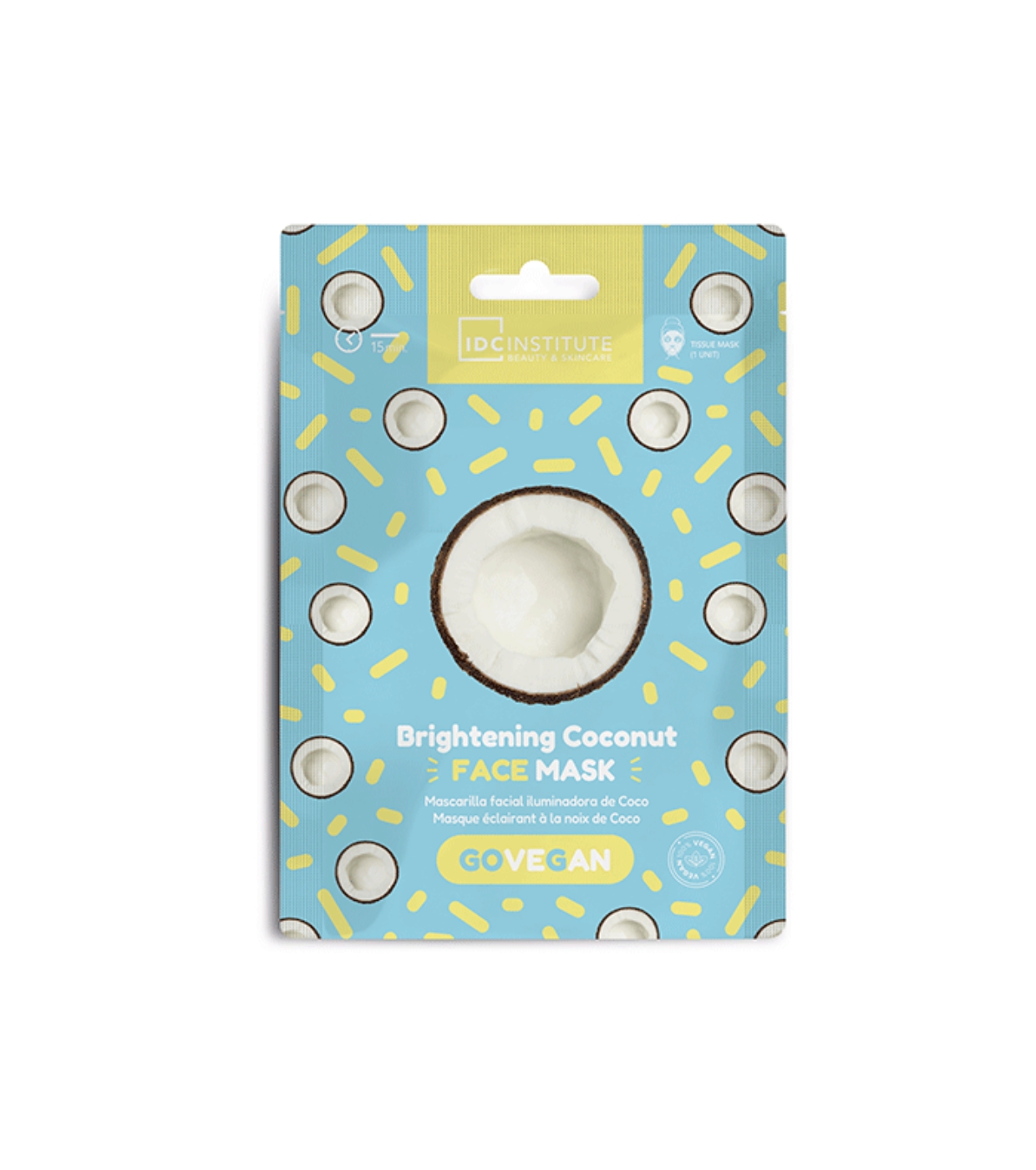 IDC Institute Kokosnuss-Gesichtsmaske im Papierformat, angereichert mit Kokosnussöl, bekannt für seine ultra-nährende und weichmachende Wirkung.