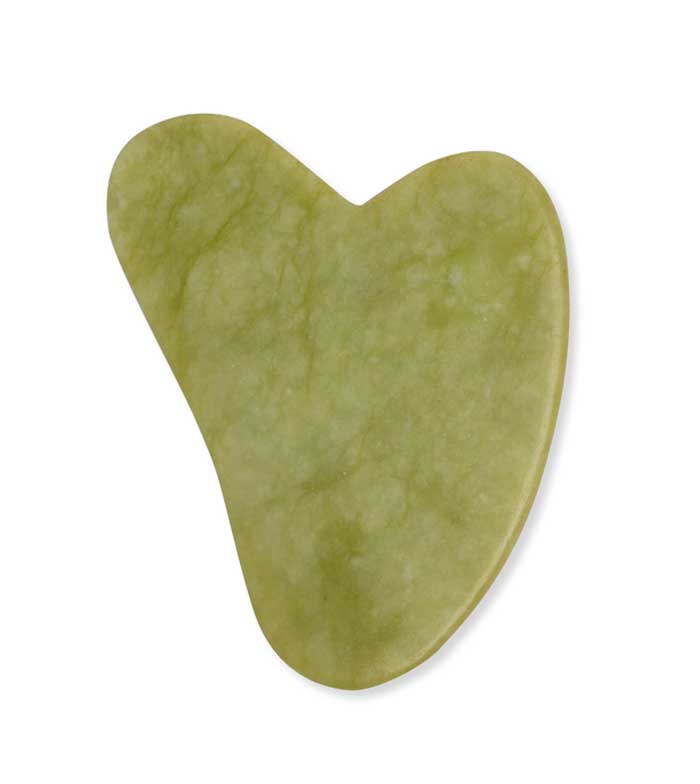 Gua Sha ist ein ideales Gesichtstool für die Gesichtspflege, dank seiner V-Form passt es sich den Gesichtskonturen an.
