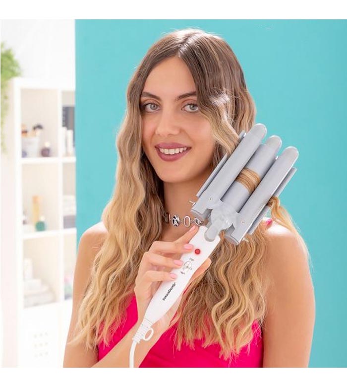 Seine drei keramikbeschichteten Stäbe ermöglichen einen vollständigen Schutz des Haares und eine homogene Wärmeverteilung bei konstanter Temperatur.