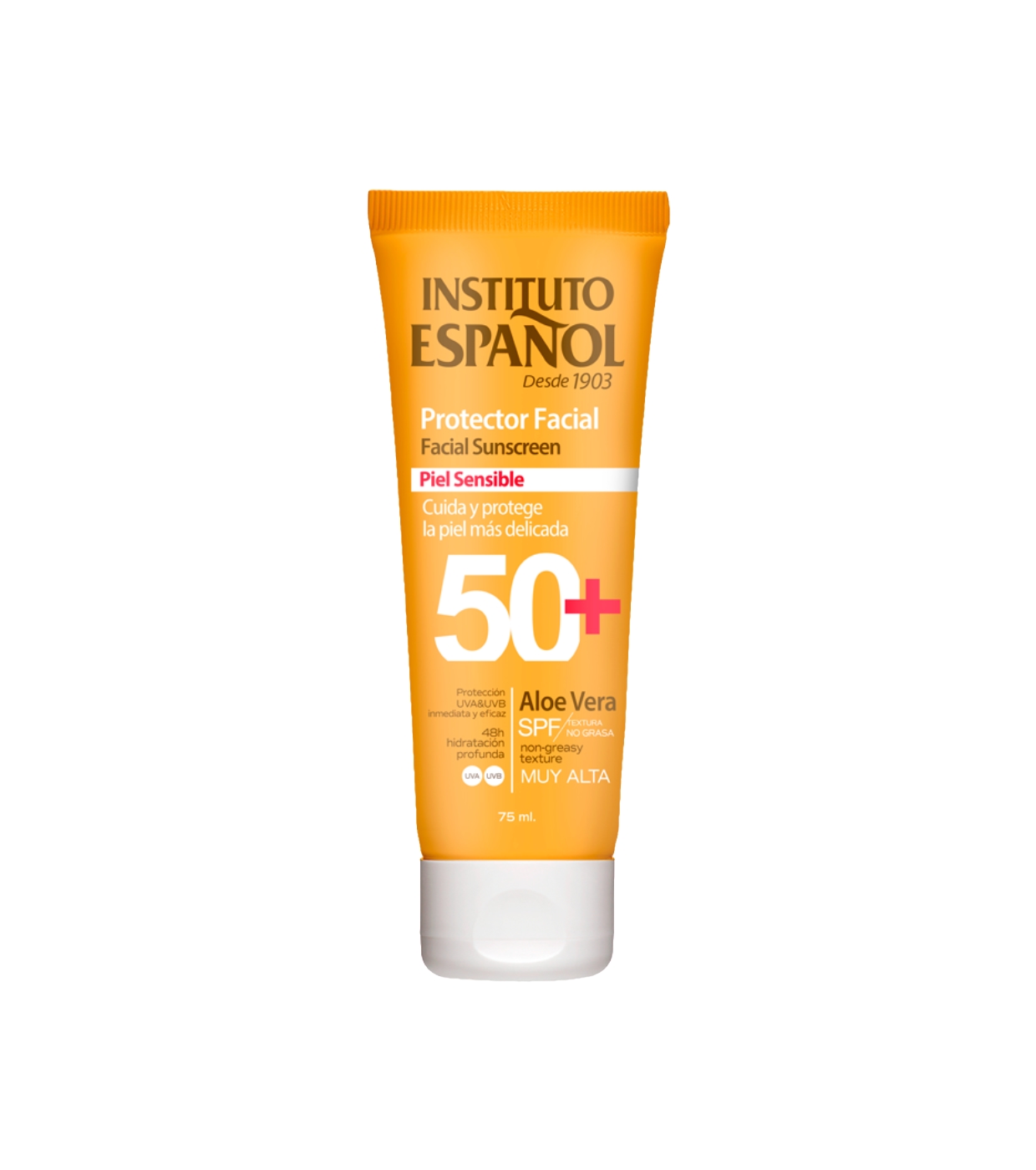 Schützen Sie Ihre empfindliche Haut mit dem Gesichtssonnenschutzmittel SPF50+ für empfindliche Haut von Instituto Español , das speziell entwickelt wurde, um die empfindlichste Haut zu beruhigen, zu pflegen und zu schützen.