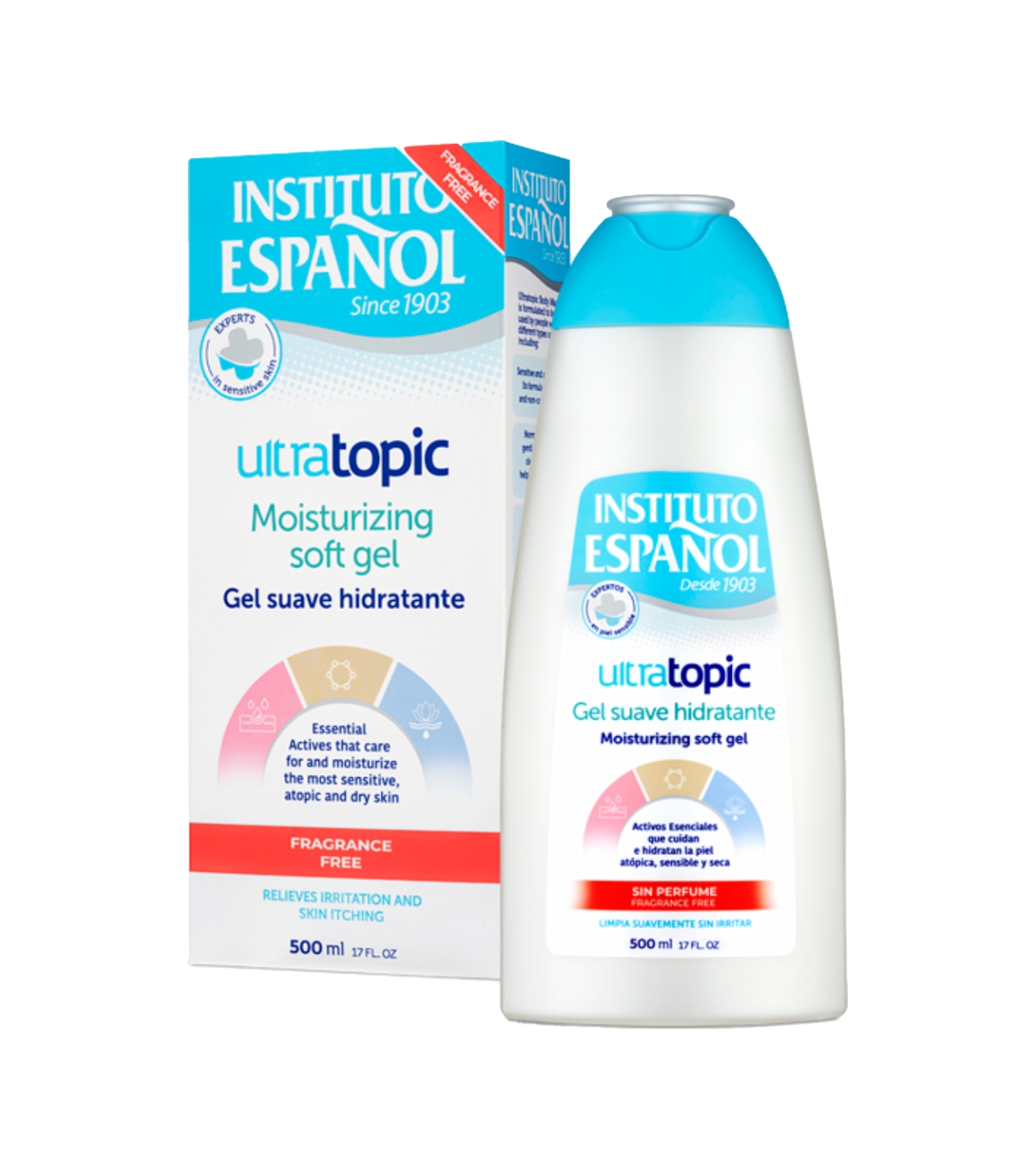 Weiches Feuchtigkeitsgel Ultratopic vom Instituto Español.