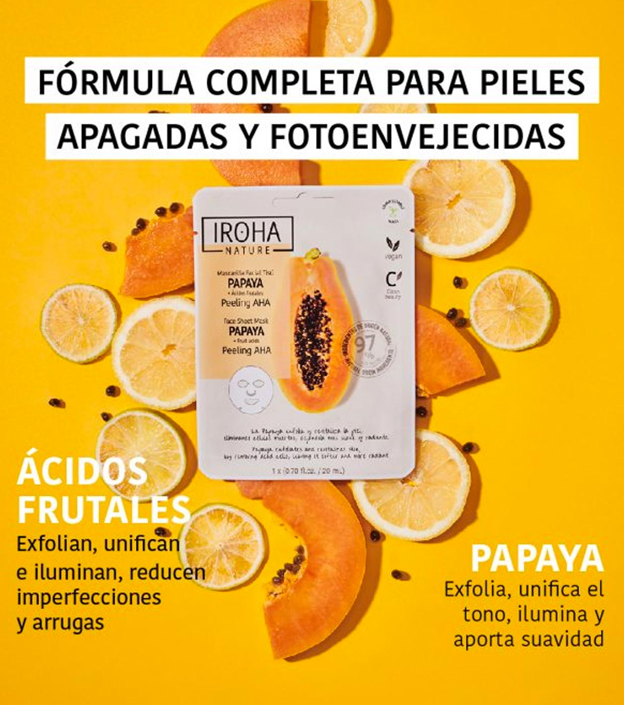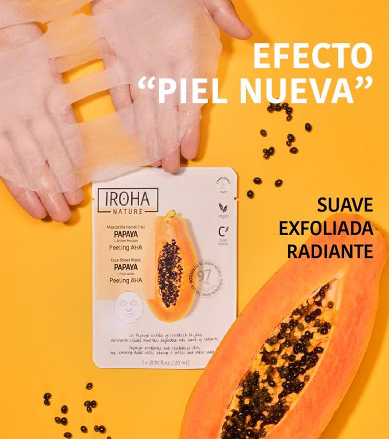 Seine saubere Formel enthält 97 % zertifizierte Inhaltsstoffe natürlichen Ursprungs. Zu seinen Hauptwirkstoffen gehört Papaya, ein kraftvolles Peeling, das die Beseitigung abgestorbener Hautzellen fördert, verstopfte Poren reinigt, Flecken beseitigt und den Glättungsprozess anregt, wodurch die Textur und Elastizität der Dermis verbessert und ihre Weichheit, ihr gleichmäßiger Ton und ihre Leuchtkraft wiederhergestellt werden.