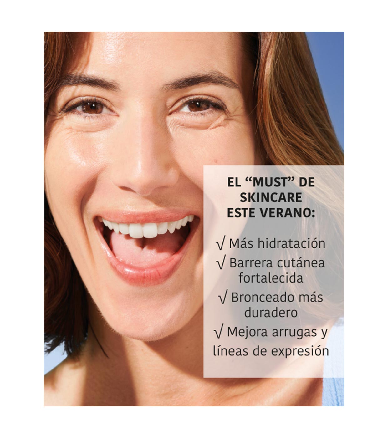 Es ist die ideale Lösung, die am besten zu Ihrer Haut passt, um sie nach dem Sonnenbad tief zu nähren, Trockenheit und Austrocknung vorzubeugen, den Bräunungston länger zu verbessern, Anzeichen vorzeitiger Hautalterung wie Falten und Mimikfalten zu bekämpfen und die Schutzbarriere der Haut zu stärken Erzielen Sie eine widerstandsfähigere, stärkere und besser geschützte Haut.