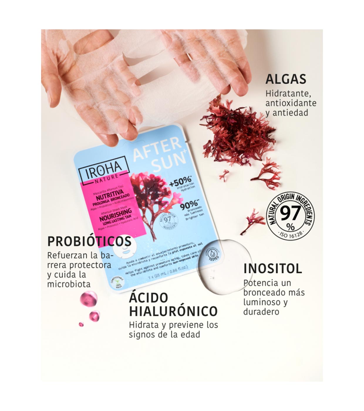 Iroha Nature Nourishing Iroha Nature Mask erhöht die Hautfeuchtigkeit, wirkt als Anti-Aging-Mittel und hat eine bräunungsverlängernde Wirkung.