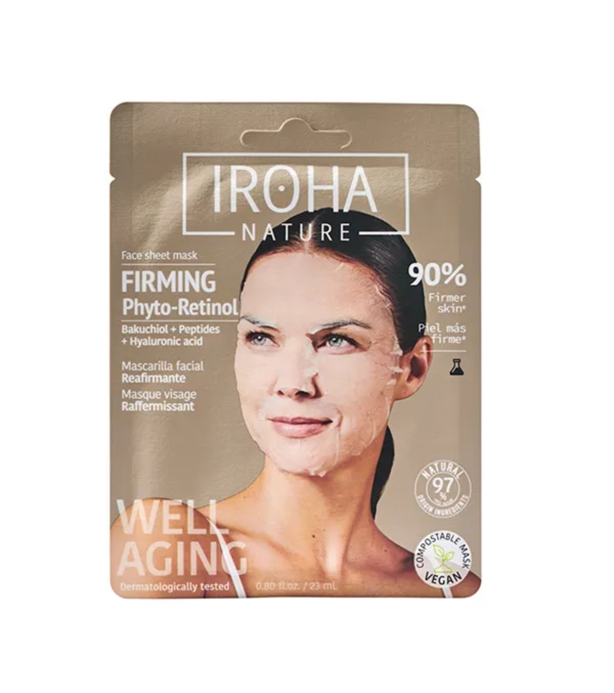 Die Hauptzutaten sind Bakuchiol, eine vegane Alternative zu Retinol, die ähnliche Ergebnisse wie Retinol bietet, jedoch ohne die negativen Auswirkungen von Retinol.