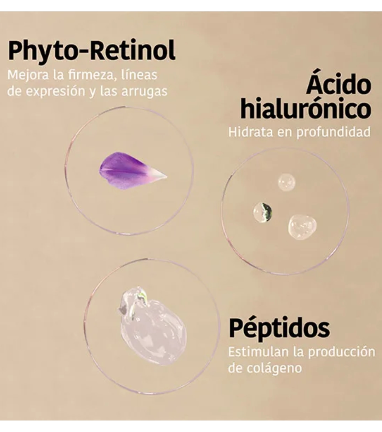 Der andere Hauptbestandteil sind Peptide, die die Kollagenproduktion stimulieren, die Hautfestigkeit verbessern und Falten und feine Linien glätten.