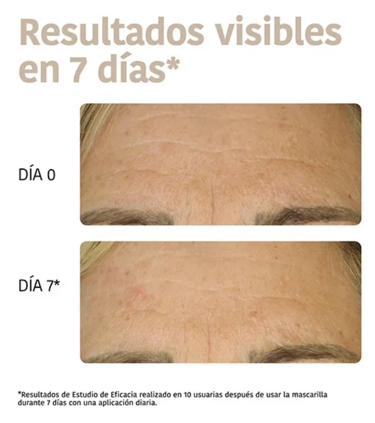 Falten Sie die Maske auf und legen Sie sie auf ein sauberes Gesicht. Nach 15 Minuten entfernen und sanft einmassieren, um die Serumaufnahme zu beenden. Spülen Sie die Haut nicht aus. Ideal einmal pro Woche.
