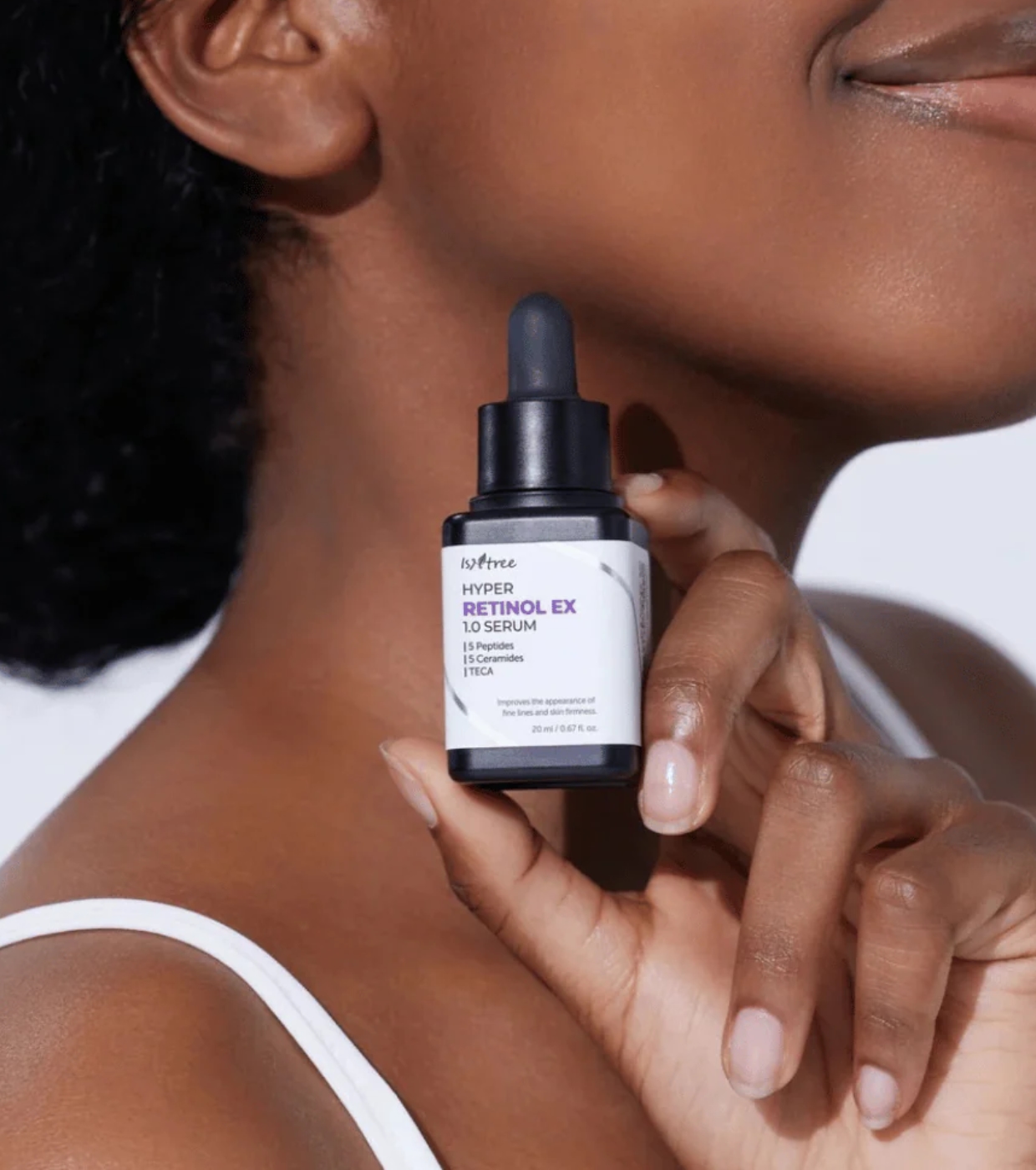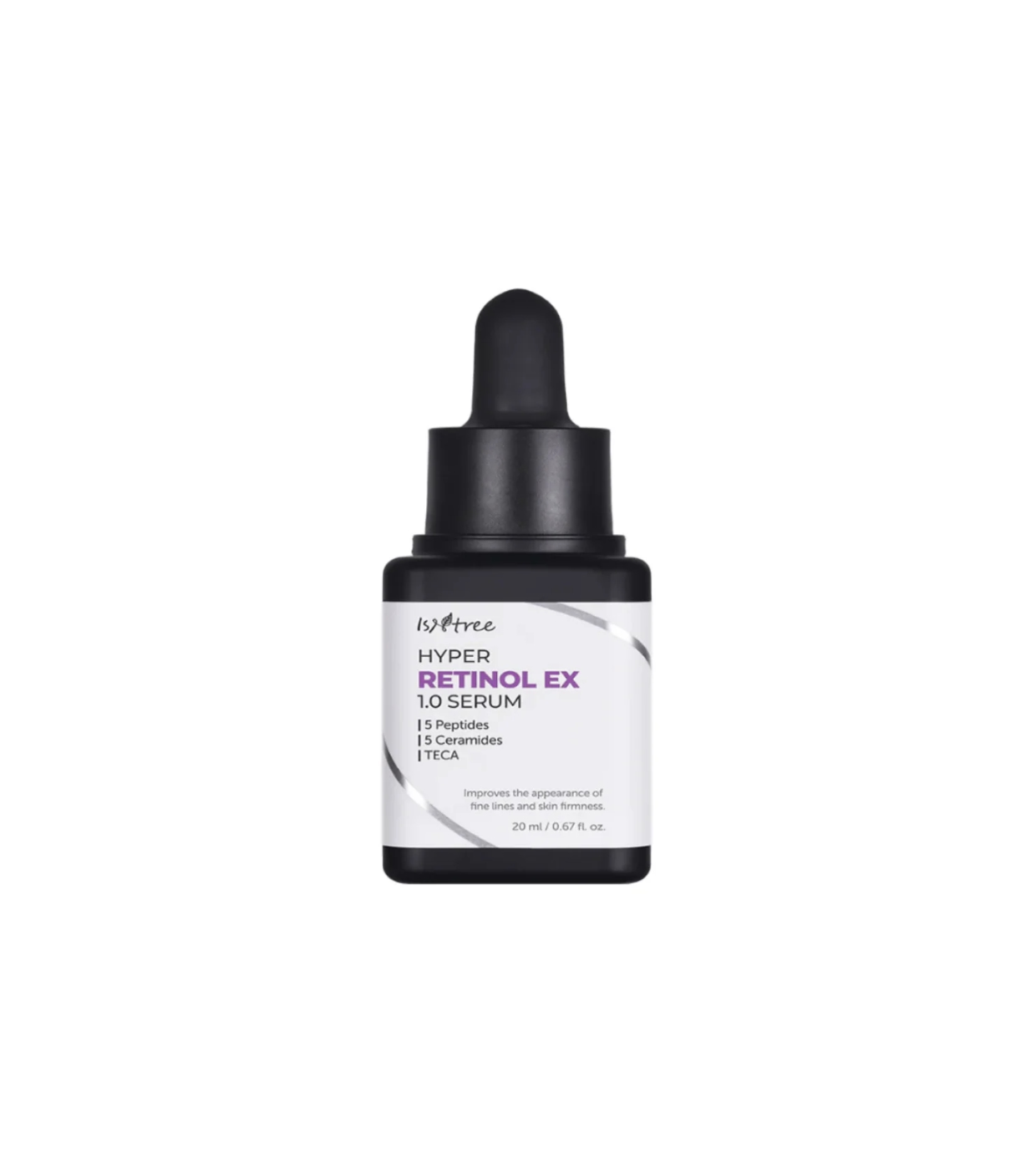 Bekämpfen Sie sichtbare Zeichen der Hautalterung wie Falten und feine Linien wirksam mit diesem Anti-Aging-Serum Hyper Retinol EX ISNtree Hyper Retinol EX ISNtree, das mit Retinol und Bakuchiol konzentriert ist.