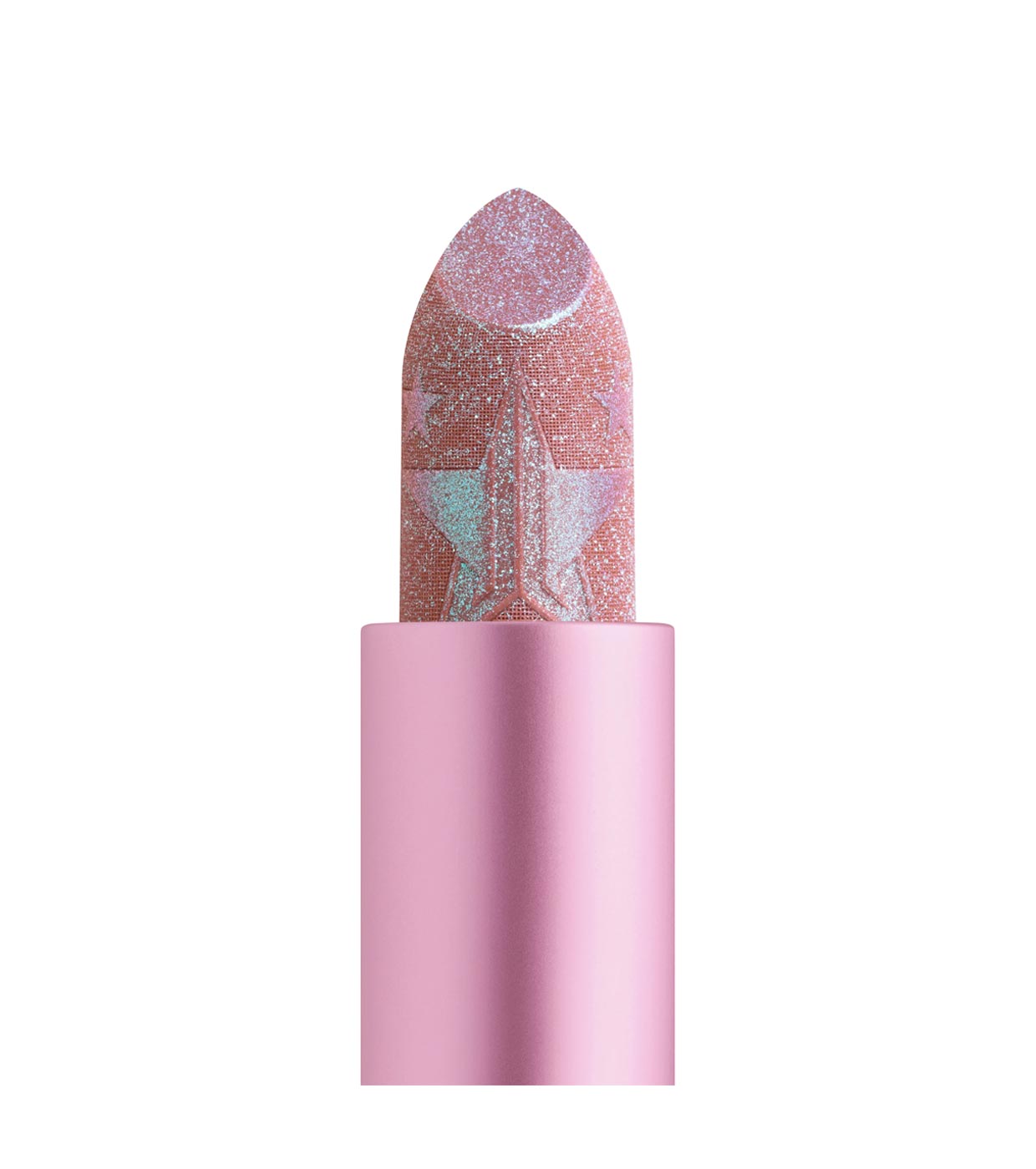 Befeuchten Sie Ihre karamellfarbenen Lippen mit dem Hydrating Glitz Lippenbalsam aus der Cotton Candy Queen-Kollektion von Jeffree Star Cosmetics..